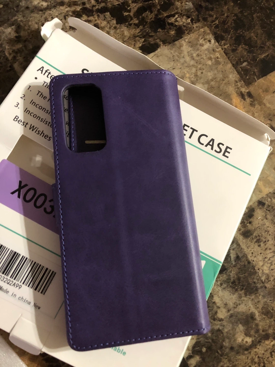 Selling a new SUANPOT S20 wallet case in purple. It's in great condition and comes with the box. Perfect for keeping your phone and cards together!
