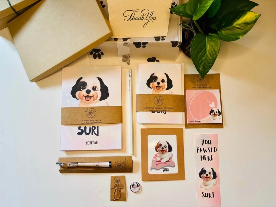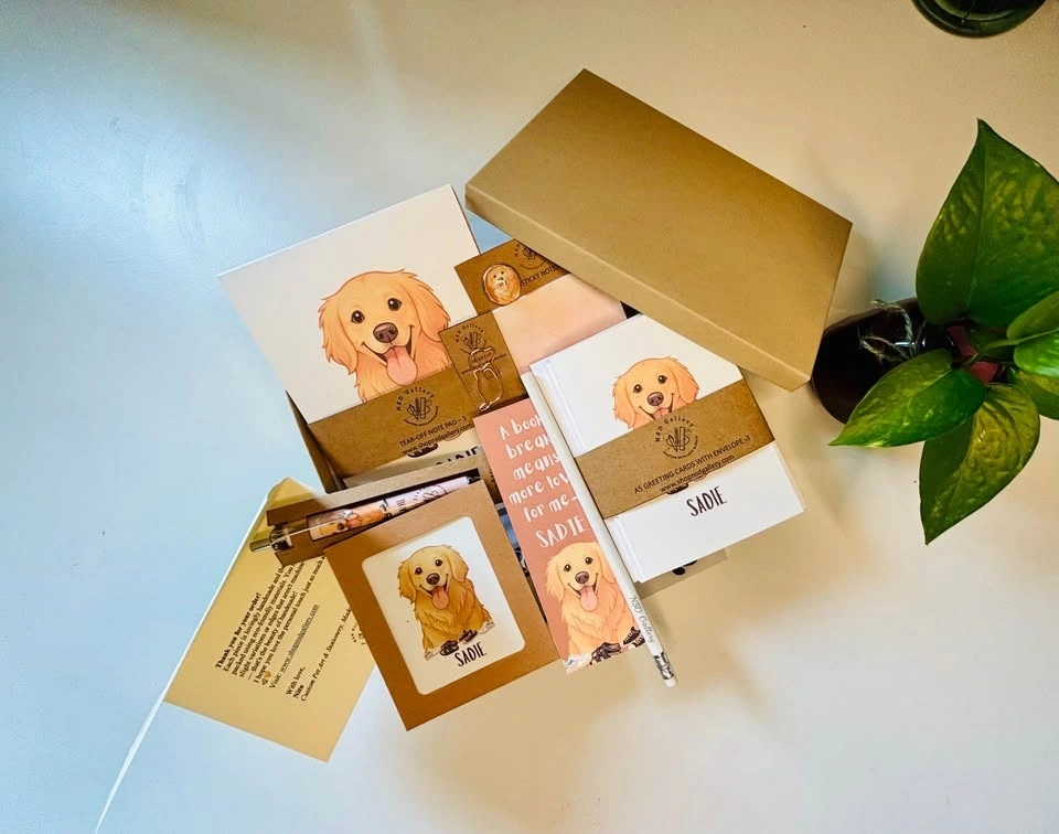 I create custom pet stationery gift boxes featuring your pet’s illustration — thoughtfully designed and handmade with love.