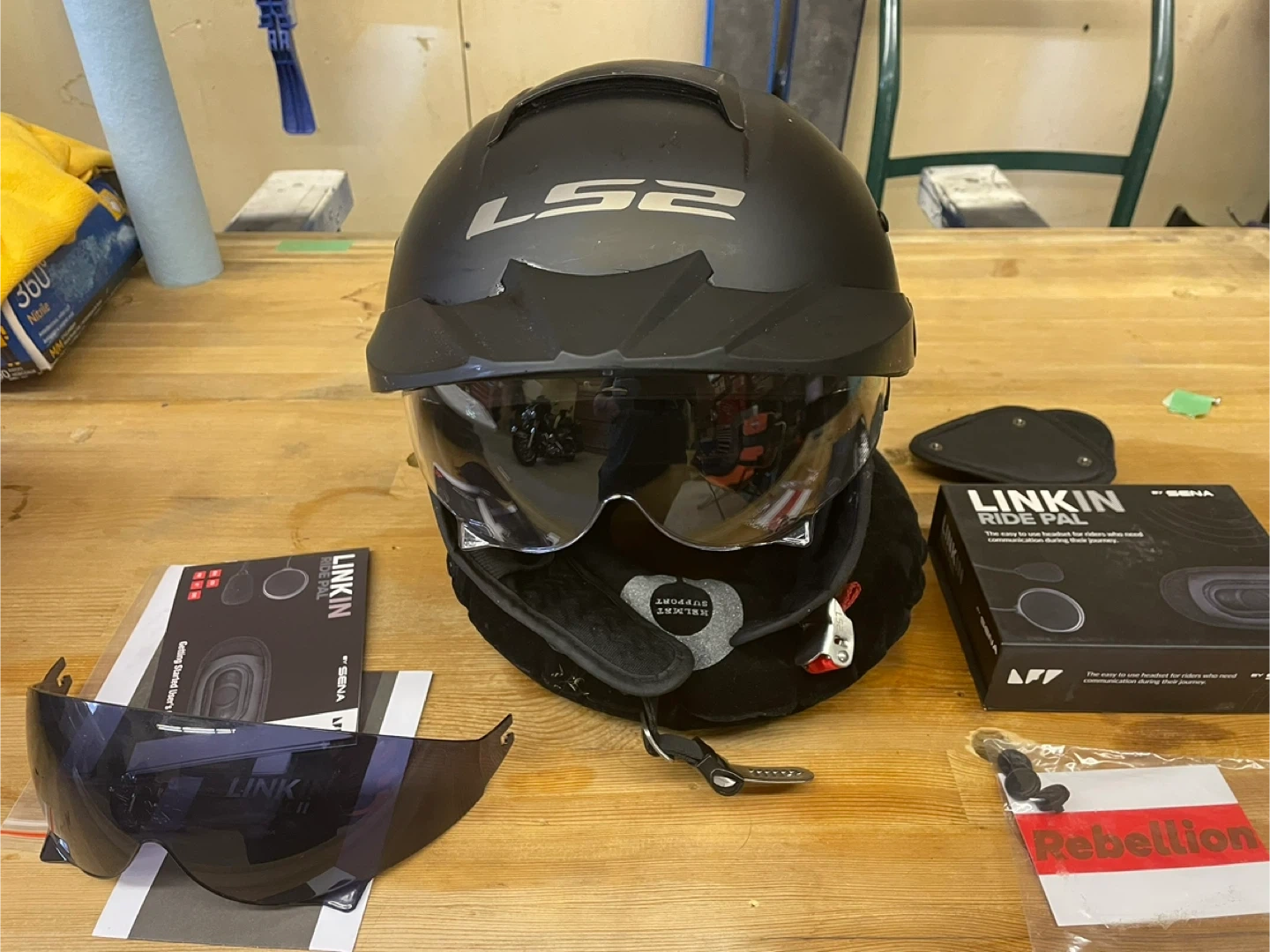 Selling my LS2 rebellion helmet. Includes LS2 Linkin Ride Pal com system. Com system is by SENA. Size Medium, but fits more as a large. Selling as a set, will not separate. Price firm. Prices of new products from Fortnine. All original accessories included. Cross posted.