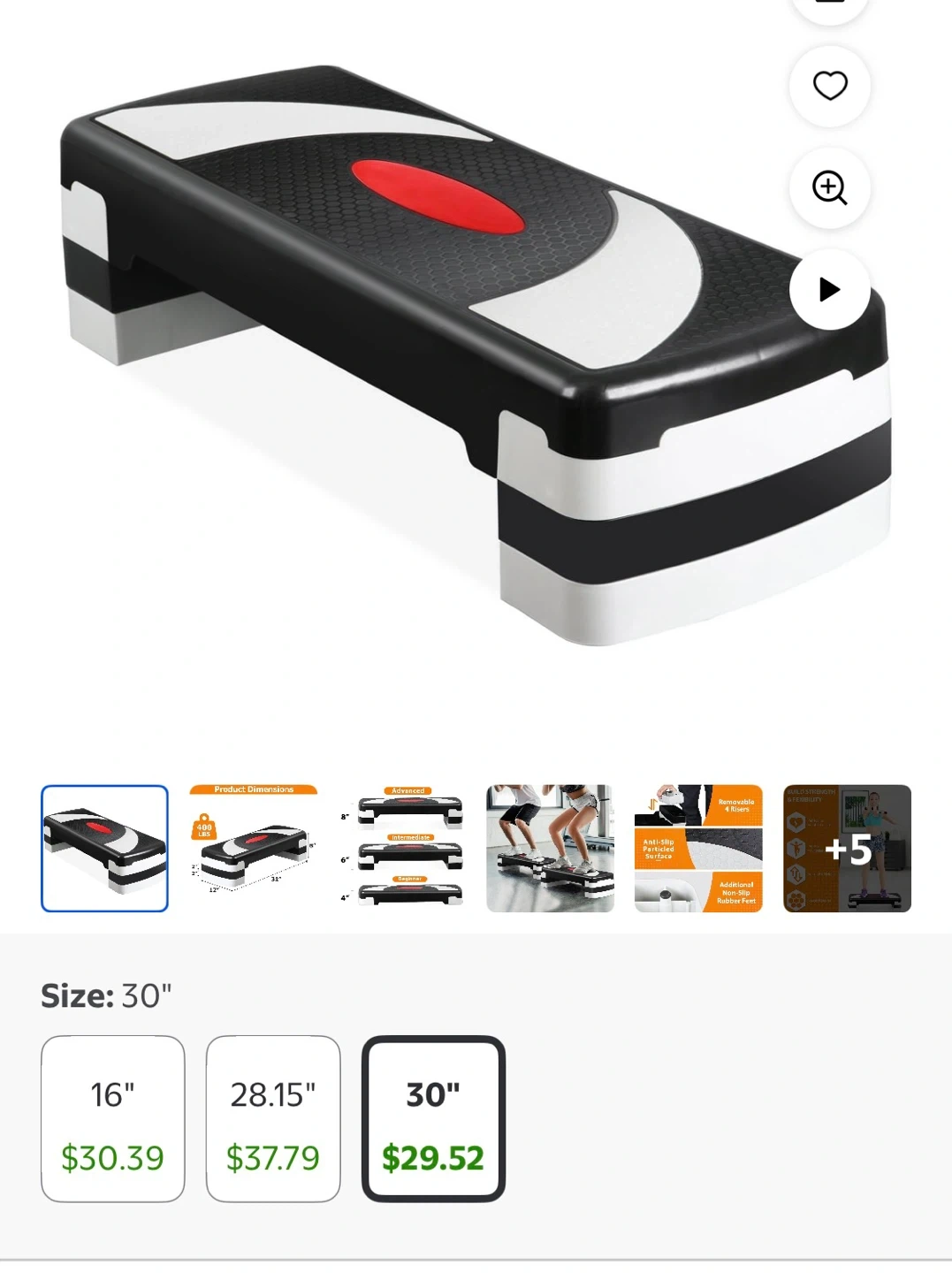 This 30-inch aerobic step is great for cardio workouts. It's made of durable plastic and has a non-slip surface for safety. Adjust the height for a greater challenge!