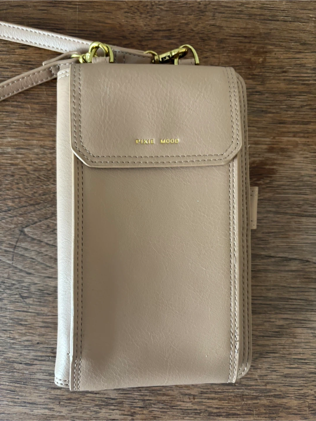 This Pixie Mood crossbody wallet is a light pink colour. It's made from faux leather and has multiple card slots inside. It also features a zippered compartment for coins or other small items. Brand new as I never used it. Cash only.