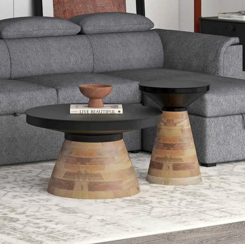 Boden 2-Piece Contemporary Round Table Set - Black/Walnut
