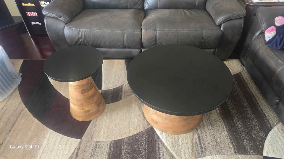 Used Boden 2-Piece Contemporary Round Table Set in Black/Walnut. Originally retailed for over $800. Priced to sell ASAP.