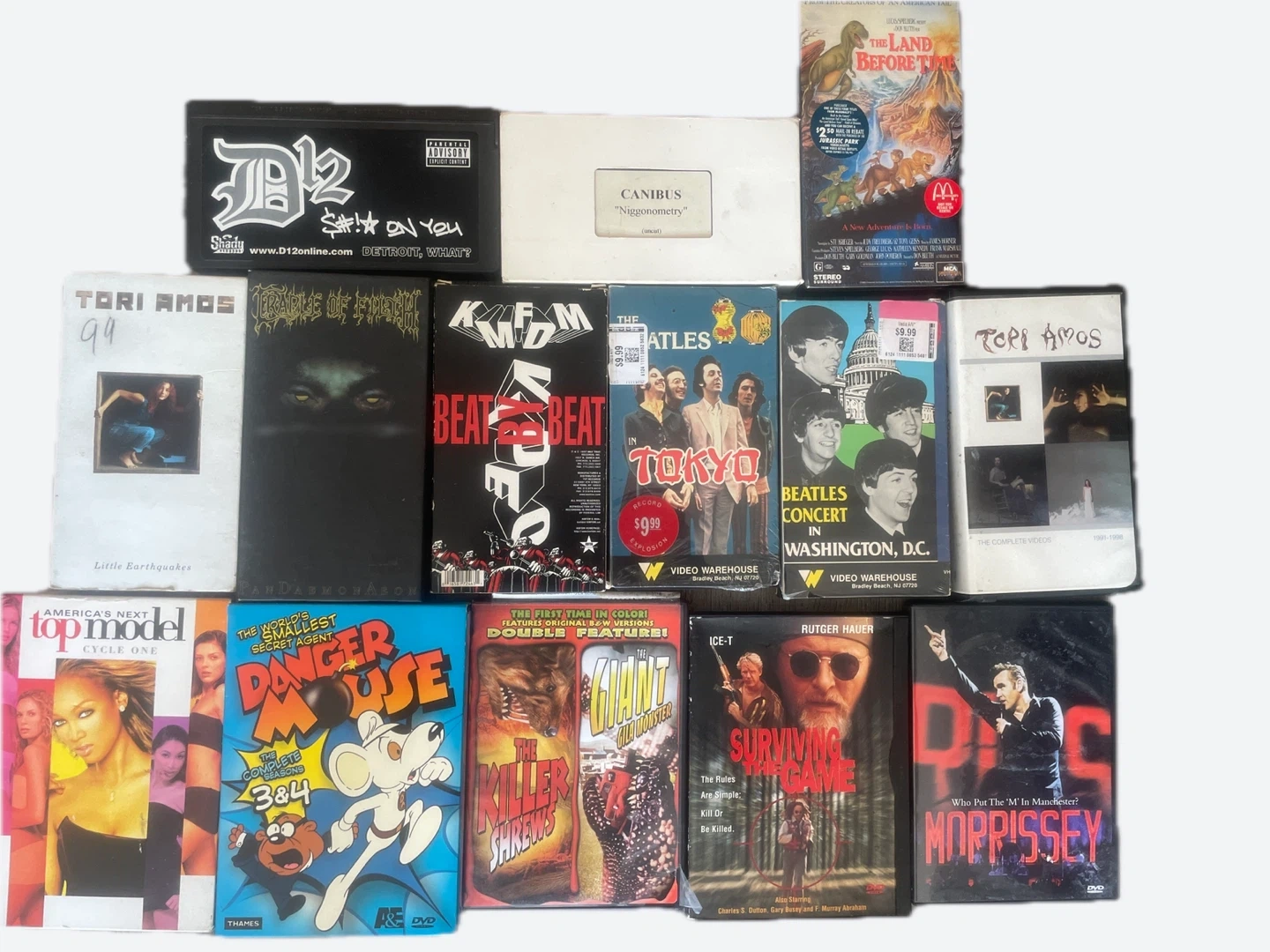 Nine VHS tapes, two box set DVDs-3 regular DVDs.