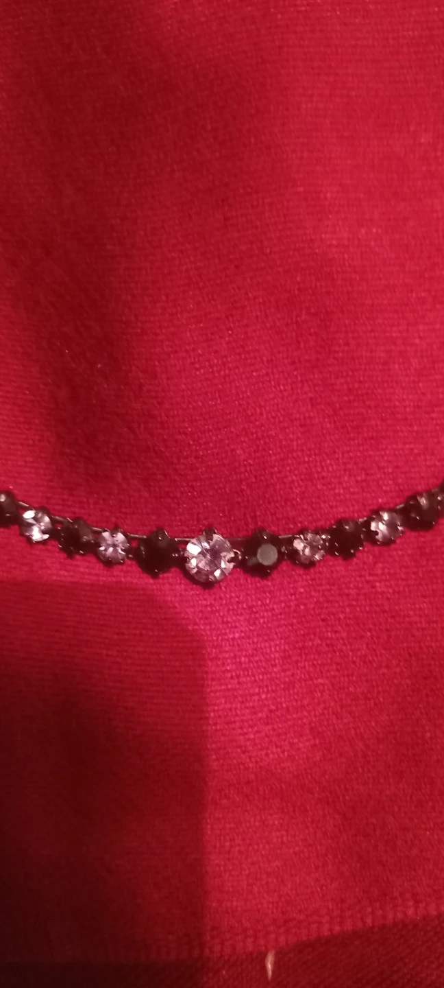This sparkly choker necklace features a mix of clear and black stones. It has a lobster clasp closure for easy wear. Great for adding a bit of glam to any outfit!