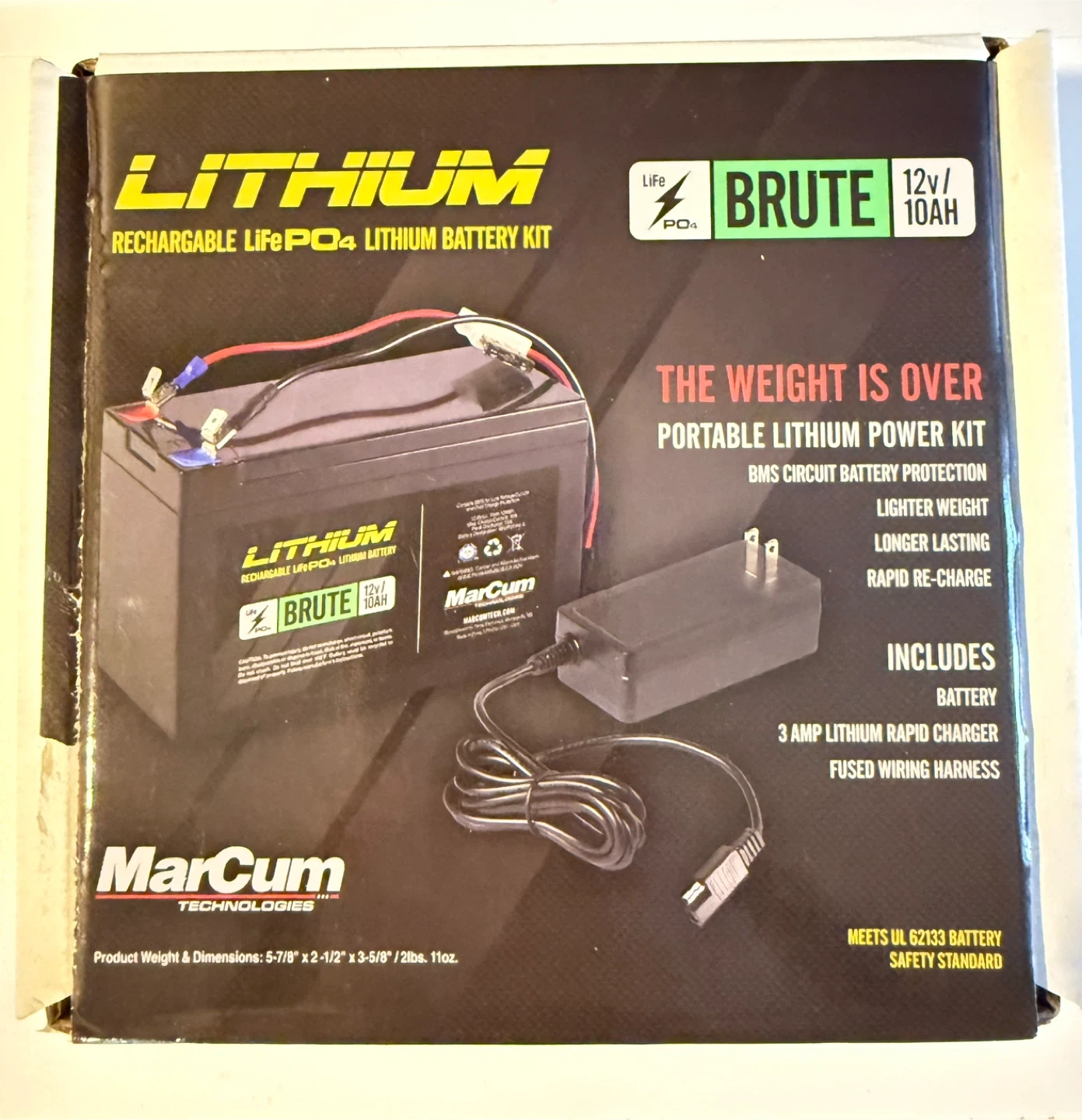 MarCum Brute 12v 10AH Lithium LiFePO4 Battery Kit