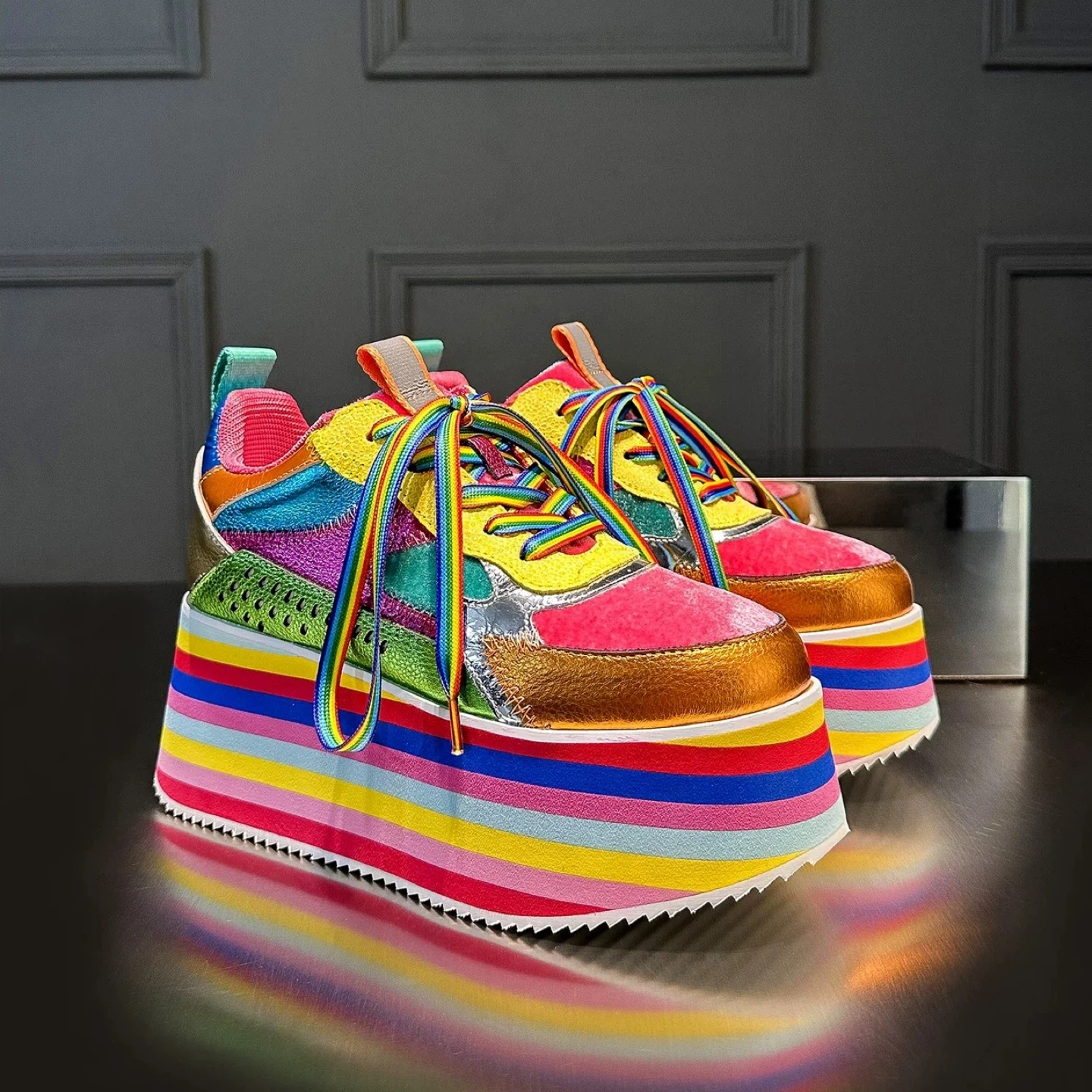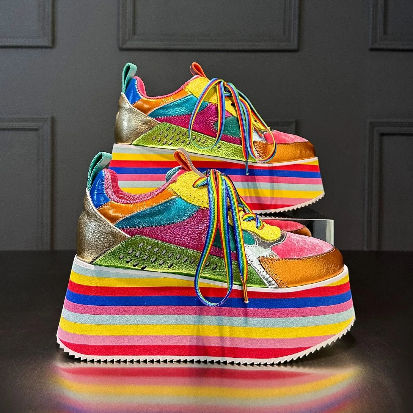 Colourful Platform Sneakers with Rainbow Striped Soles