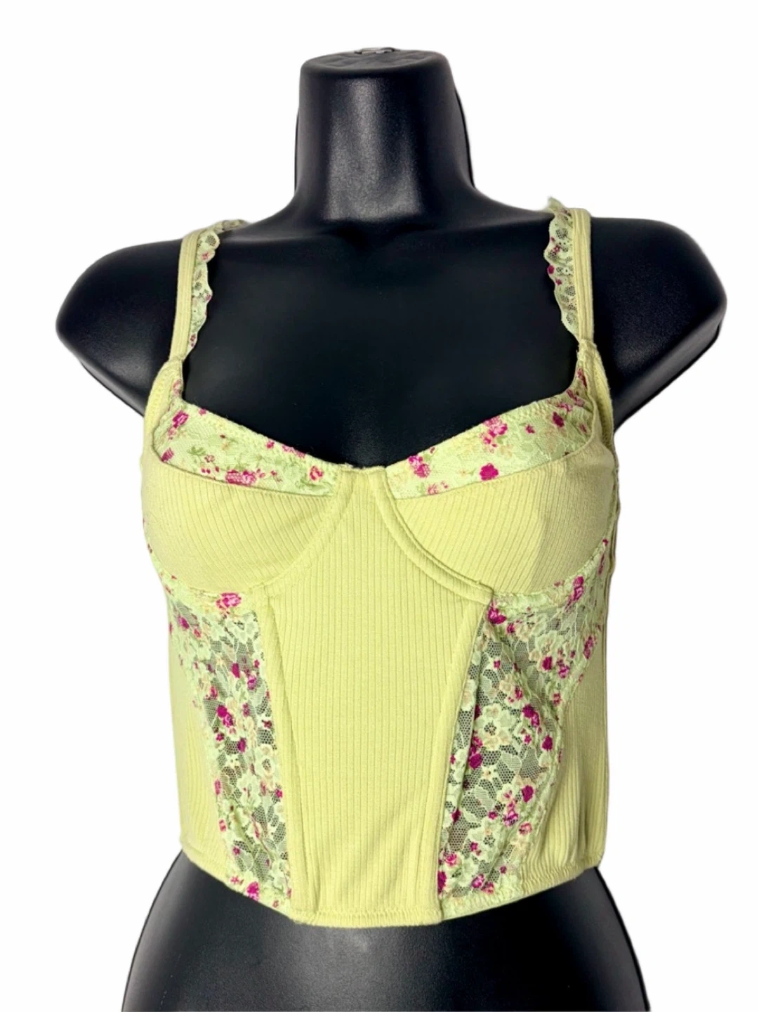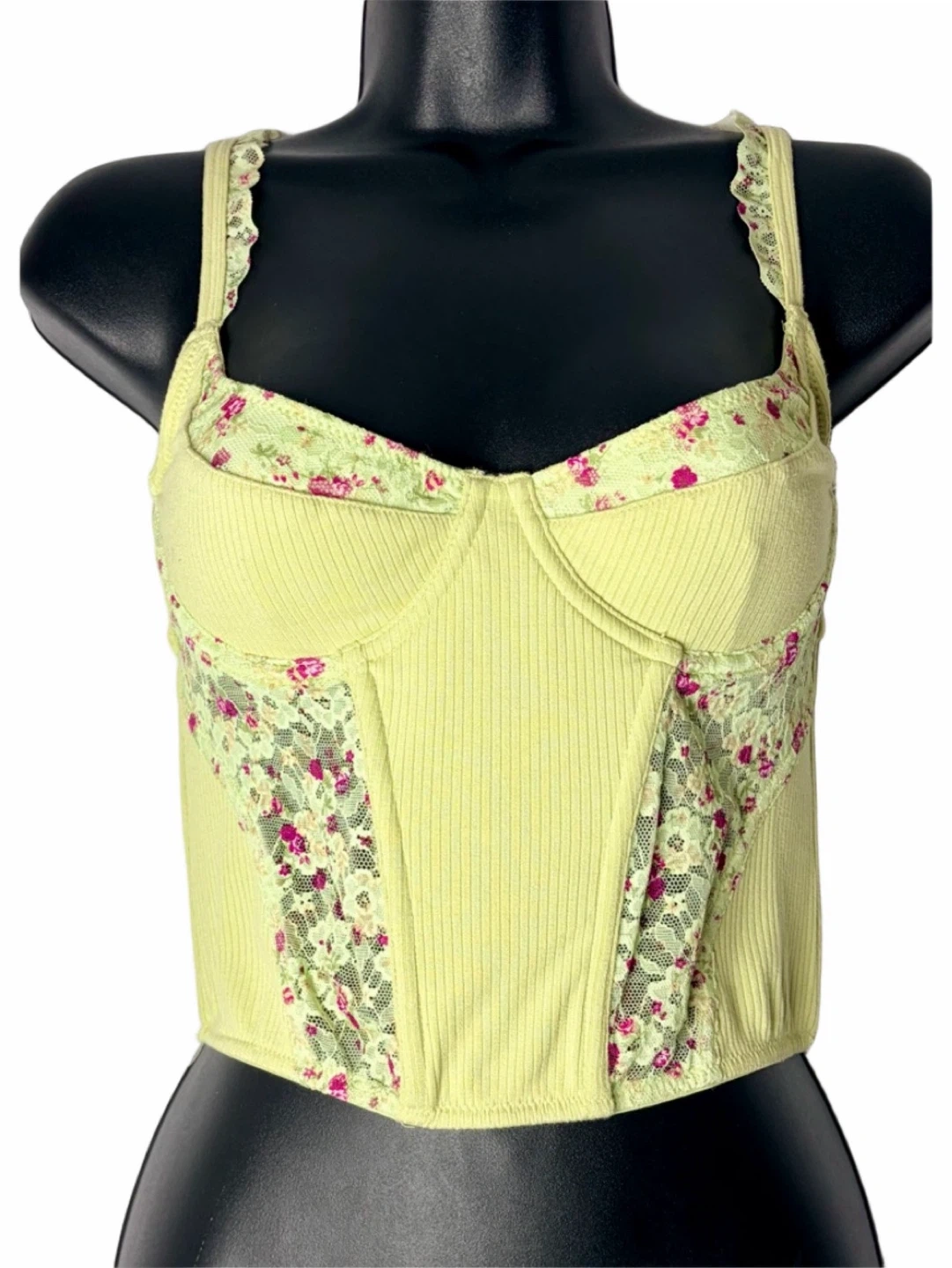 URBAN OUTFITTERS OUT FROM UNDER Love Bug Green Lace Corset Top