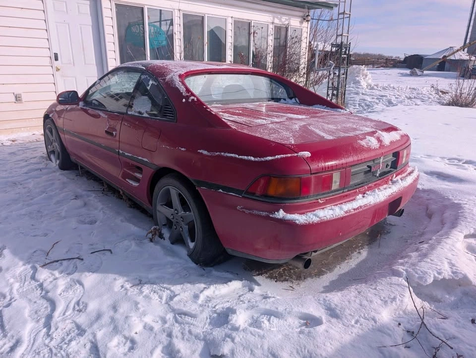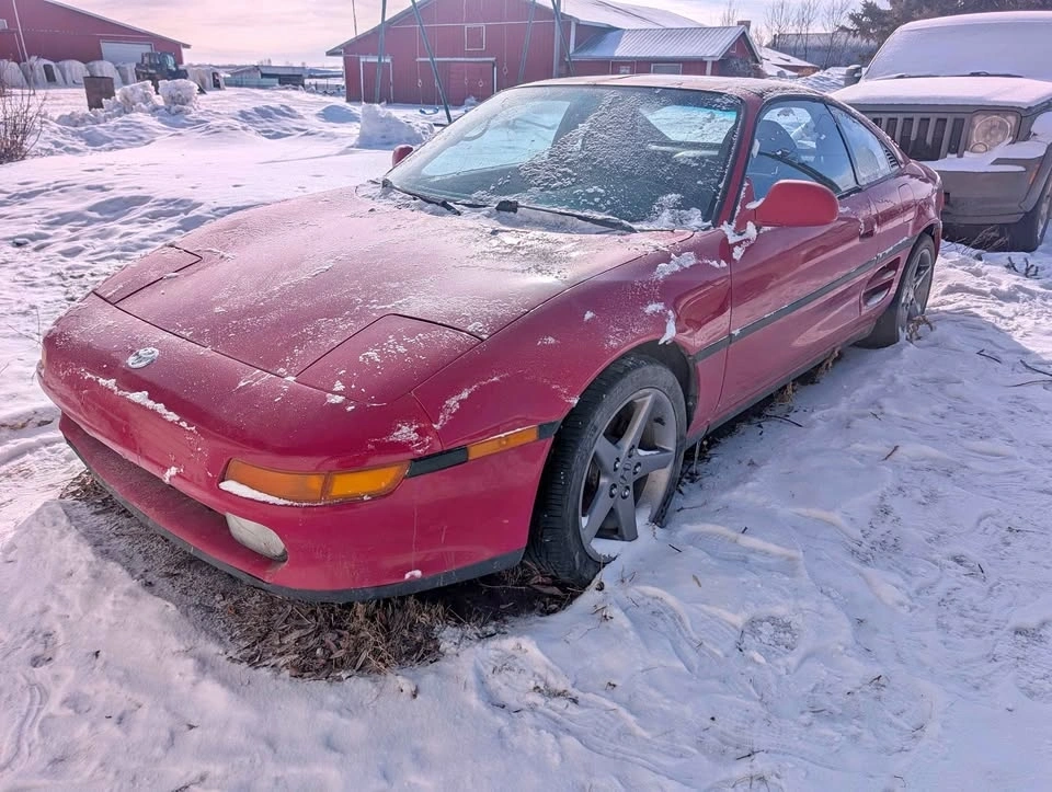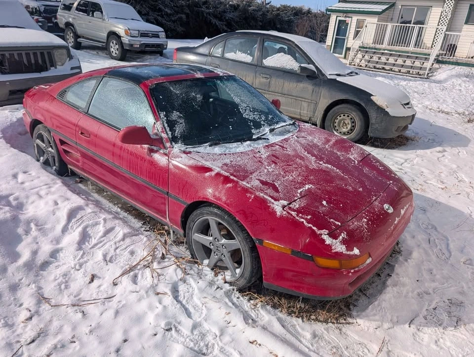 1991 Toyota MR2 base T-Top. LHD original Canadian car with 357k KM. Manual transmission, 2.2L engine. Features auto locks and windows, AC, ABS, and fog lights. Alberta registered and active. No check engine or warning lights on the dash. Original motor and transmission. Frame is good, not rusting. Car is stock besides an aftermarket stereo and BC Racing Coilovers ($2500). Wired for sub and amp. Includes Celica Steering wheel and factory alarm system (key fobs can be programmed for keyless entry). Car will be sold with factory tires. Starts, runs, and drives, but has developed a loud knock. $7K OBO.