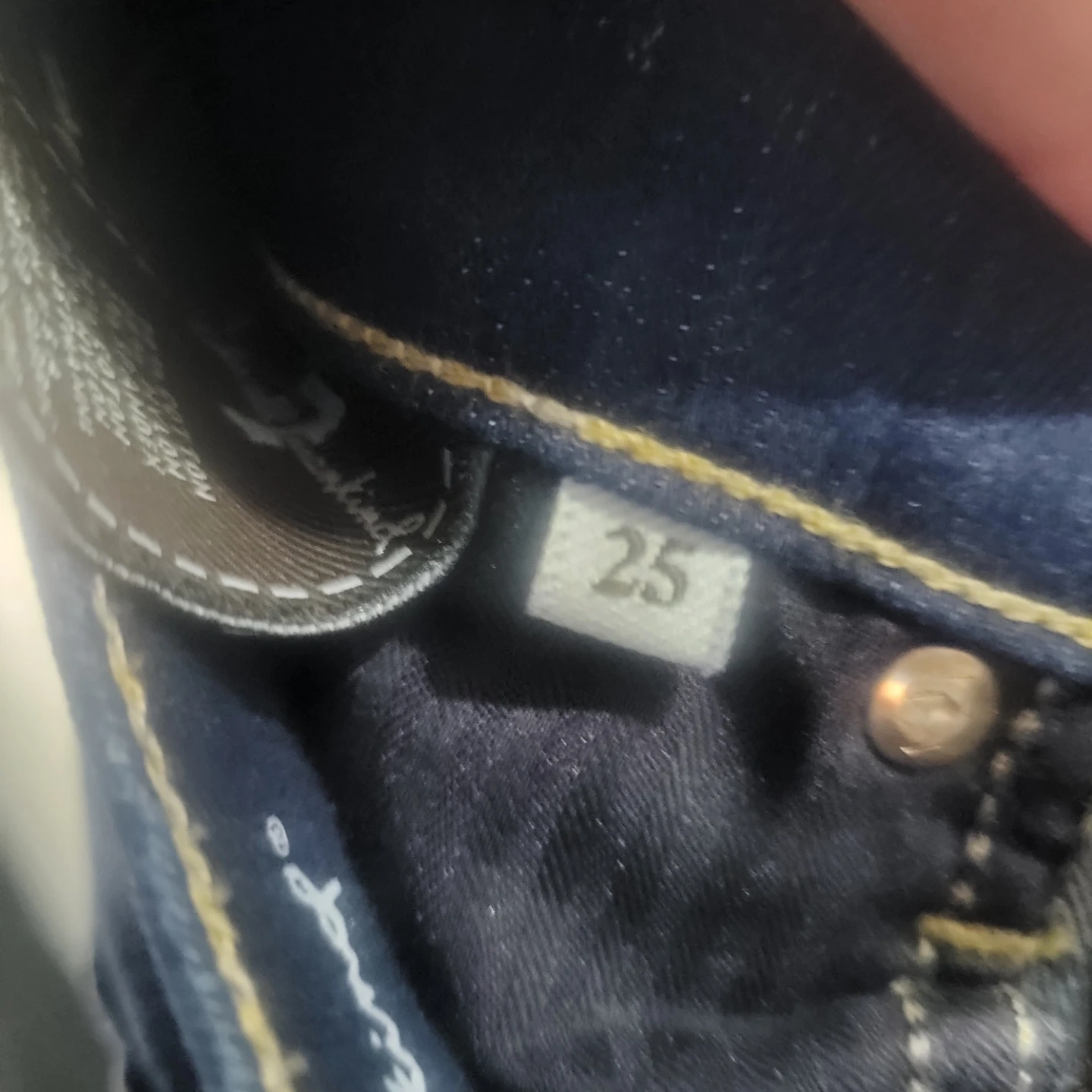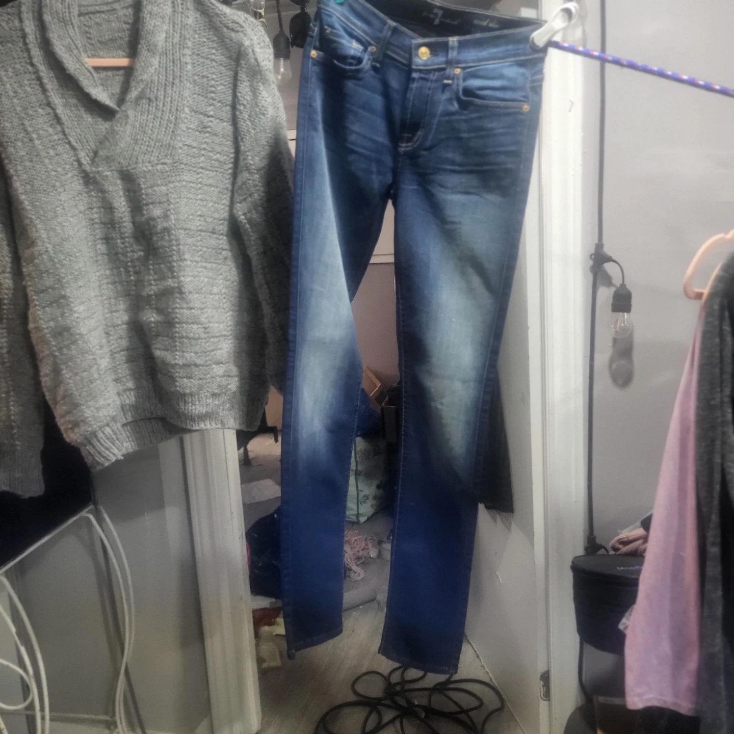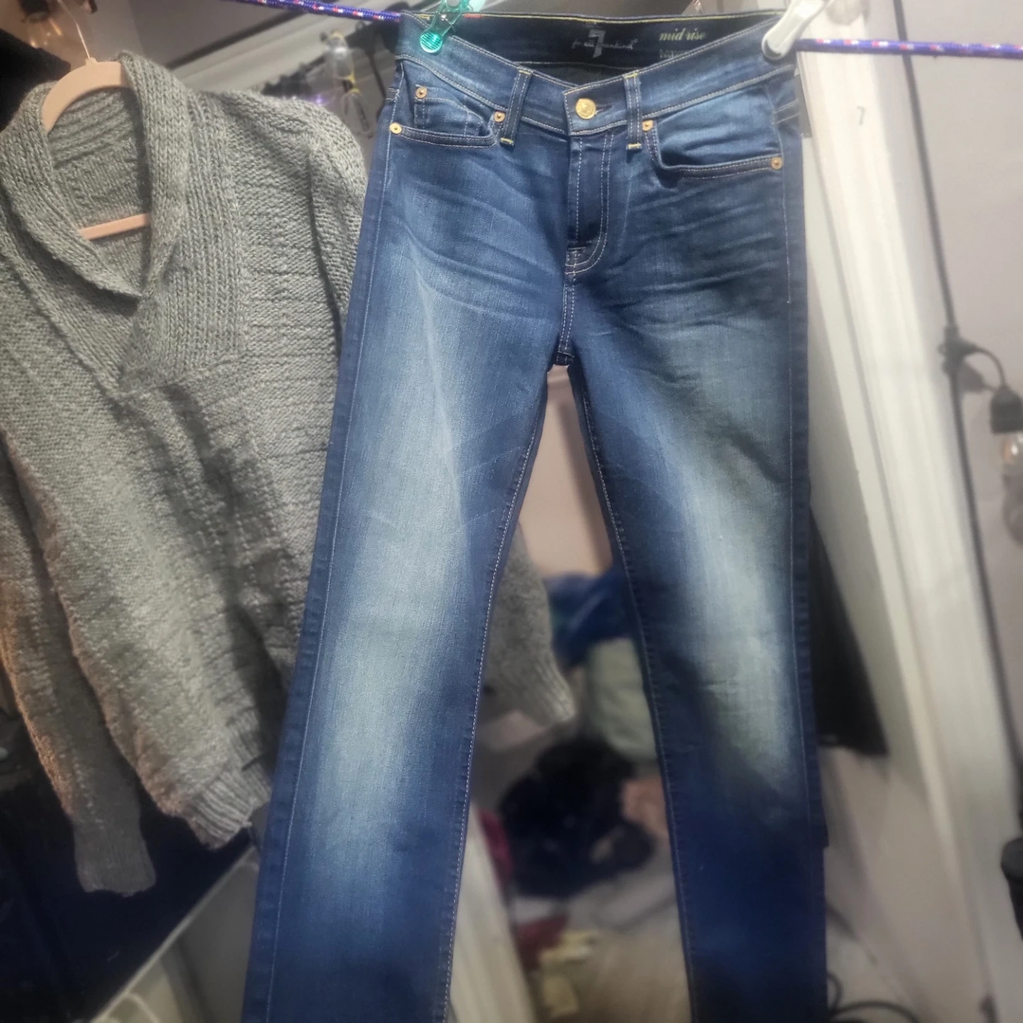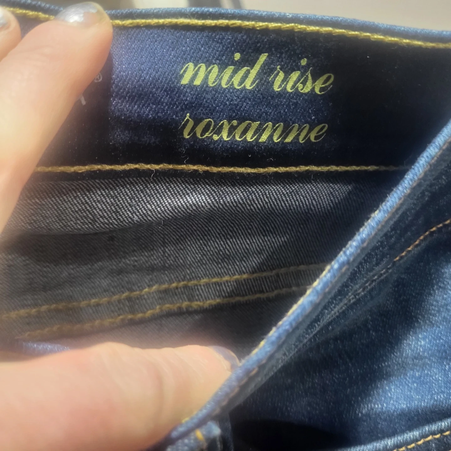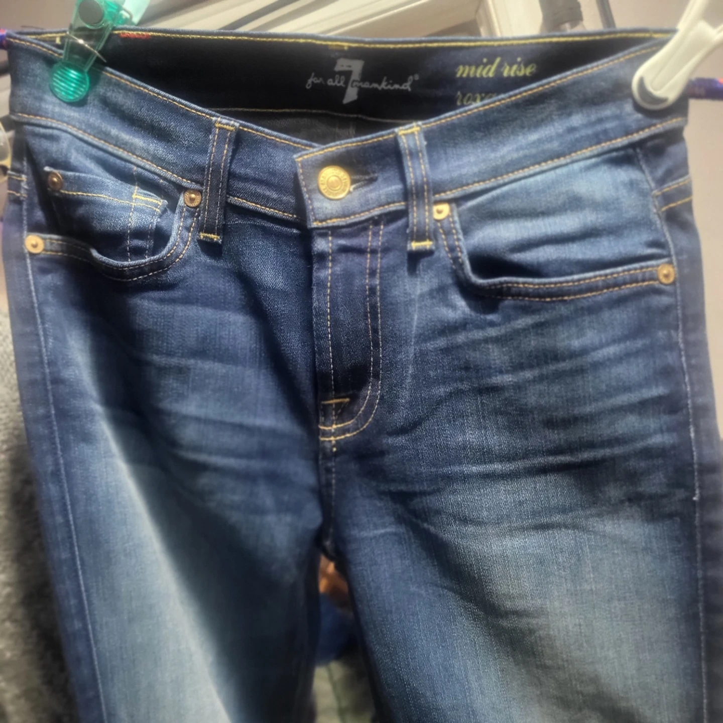 These are 7 For All Mankind Roxanne jeans. Mid rise fit. Size 25. Classic blue wash denim.