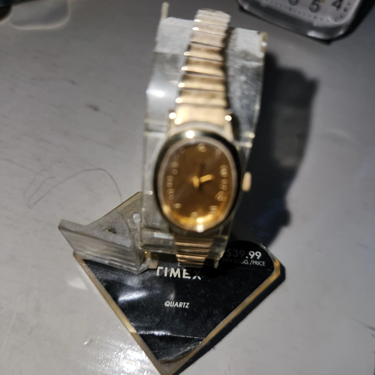 Selling a Timex Quartz watch in gold! The original price was $39.99. It's in good condition and ready for a new wrist