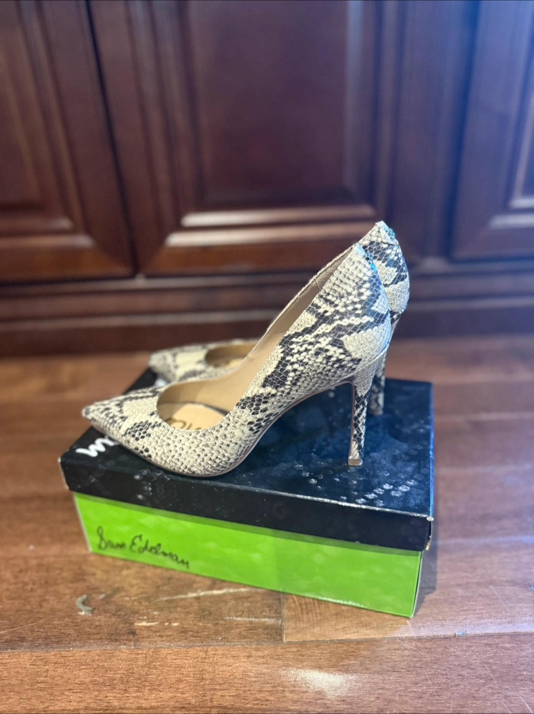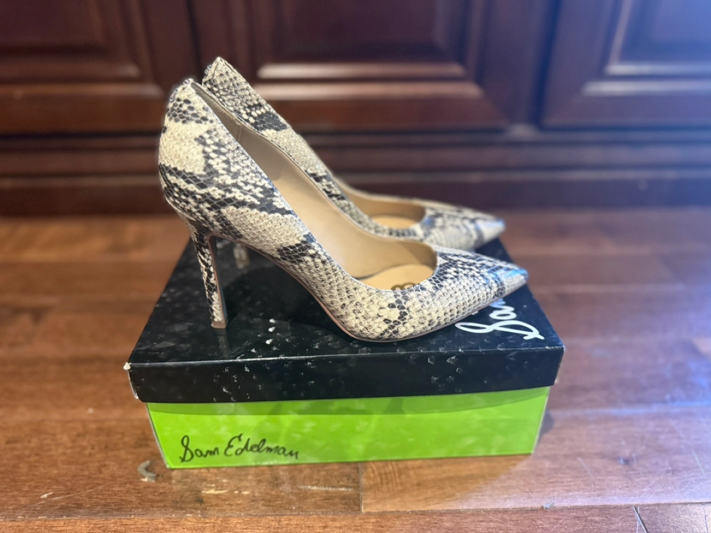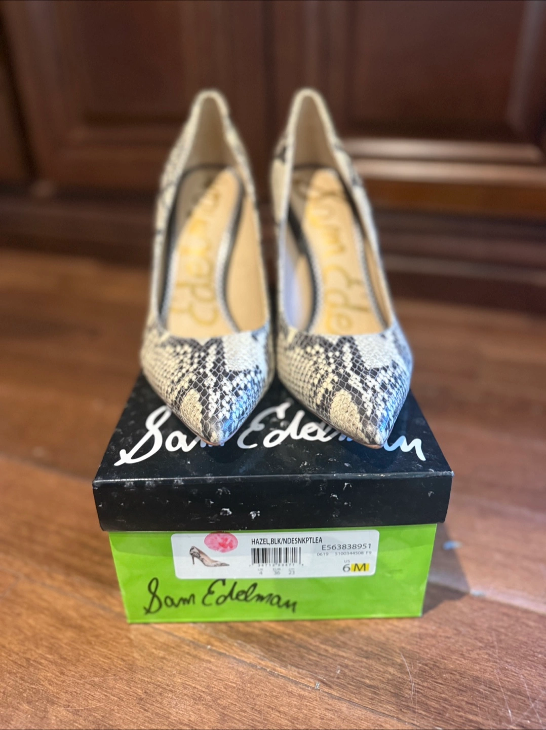 These Sam Edelman Hazel pumps are a stylish addition to any wardrobe! They feature a snakeskin pattern and come in a size 6M. The original box is included!