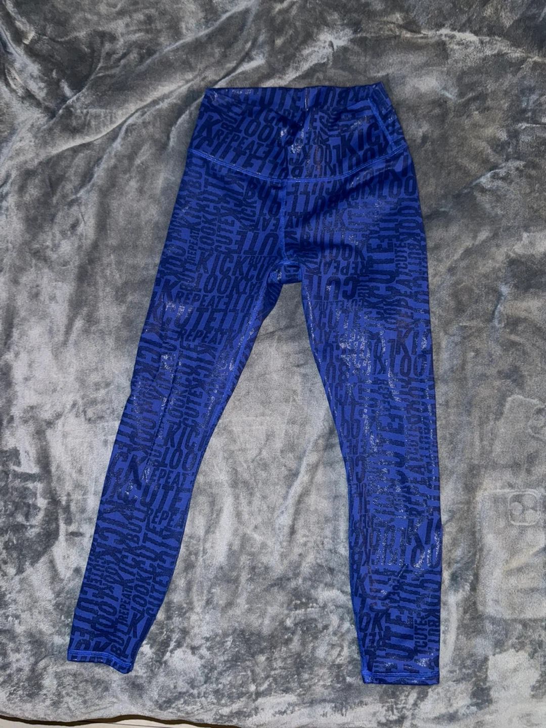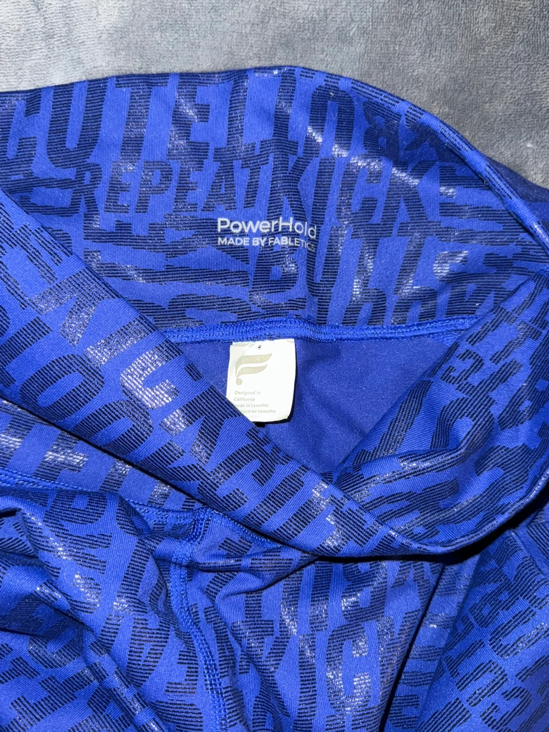 These Fabletics PowerHold leggings are in great condition! They're a vibrant blue with a unique pattern. Perfect for workouts or everyday wear!