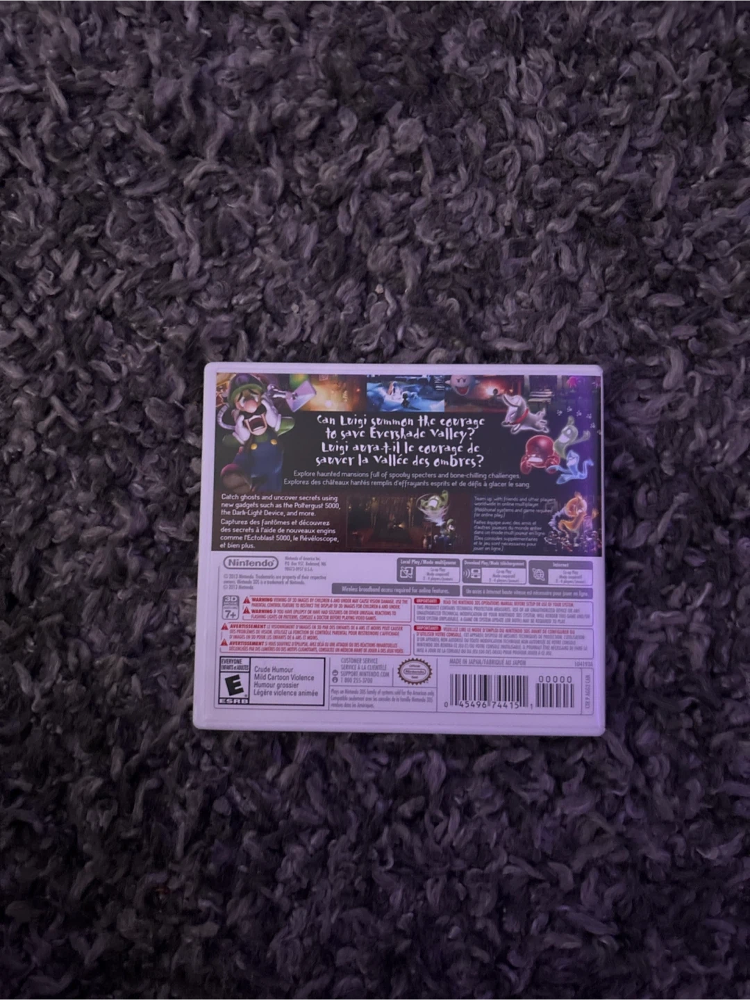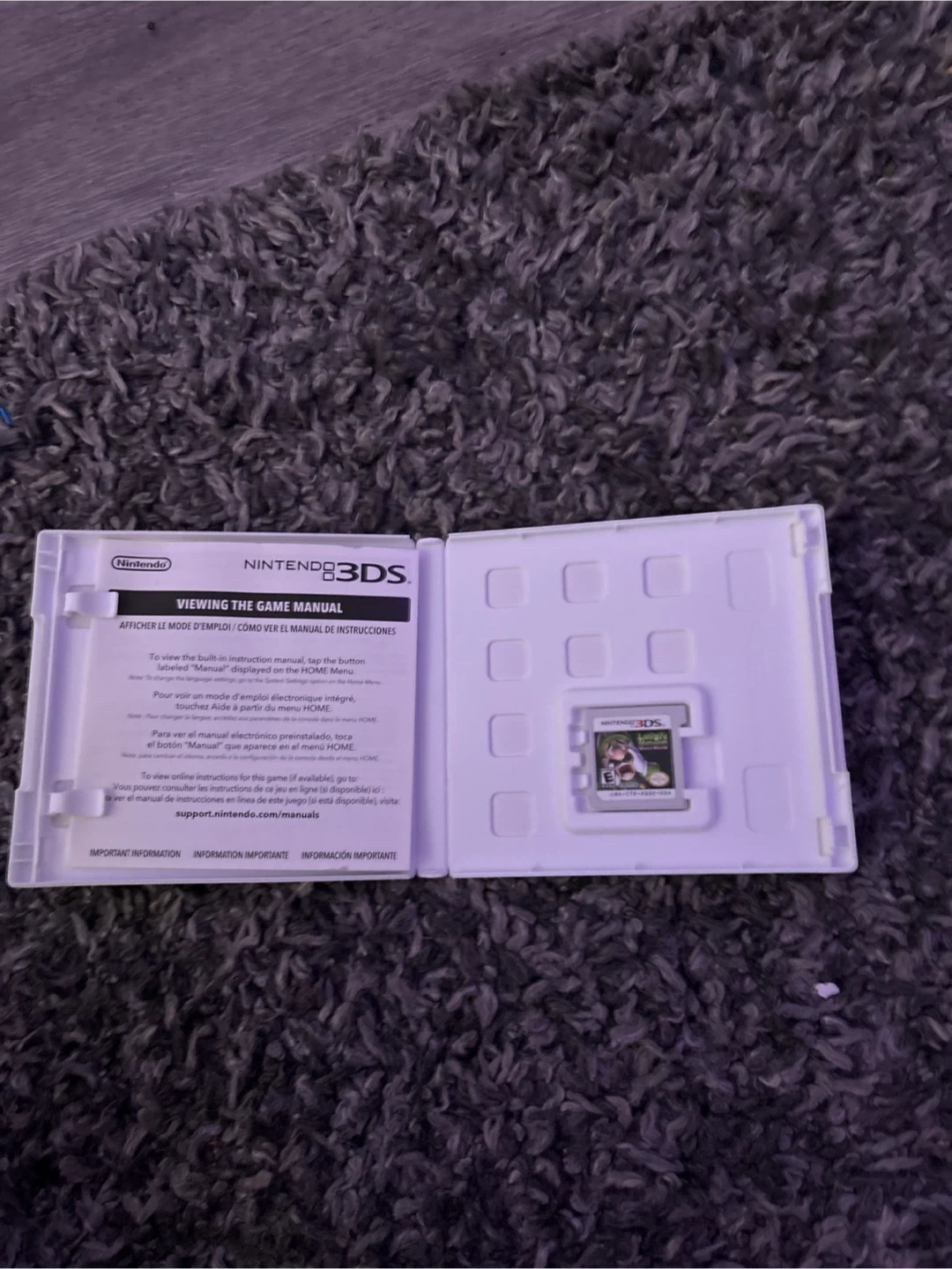 This is the Luigi's Mansion: Dark Moon game for the Nintendo 3DS. It includes the game cartridge and the original case with the manual. Enjoy Luigi's spooky adventure!