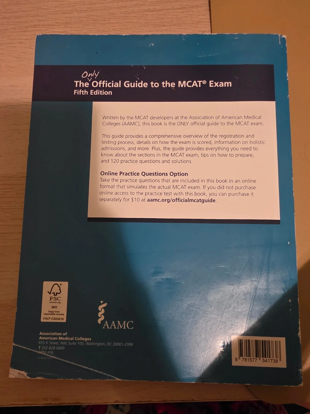 Selling The Official Guide to the MCAT Exam, Fifth Edition! It has 120 practice questions written by the test developers at the AAMC. It also includes tips on how to prepare for the exam. This guide provides a comprehensive overview of the registration and testing process, details on how the exam is scored, information on holistic admissions, and more
