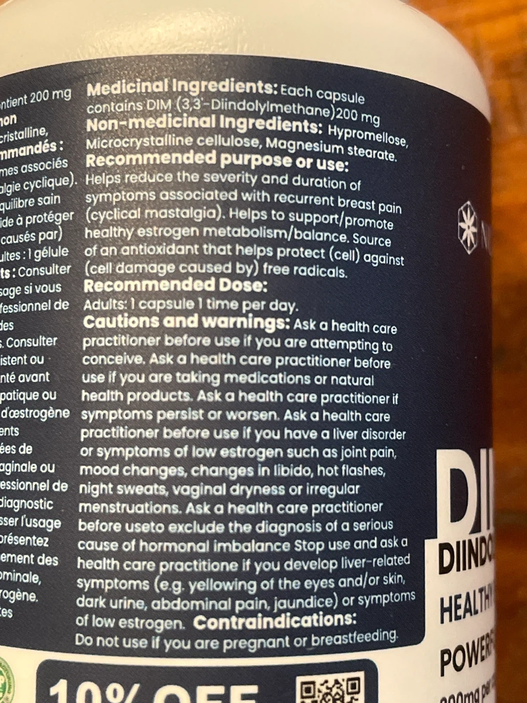 Nutrali DIM 200mg capsules for healthy estrogen balance and antioxidant support. Contains 200 mg of Diindolylmethane per capsule. This bottle has 60 capsules.