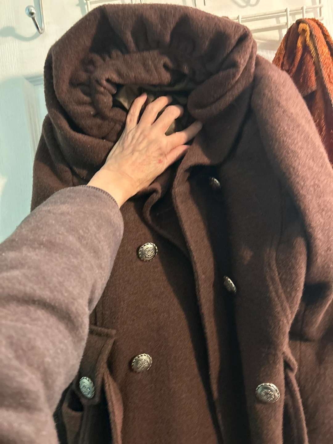 Brown Double-Breasted Wool Coat with Silver Buttons