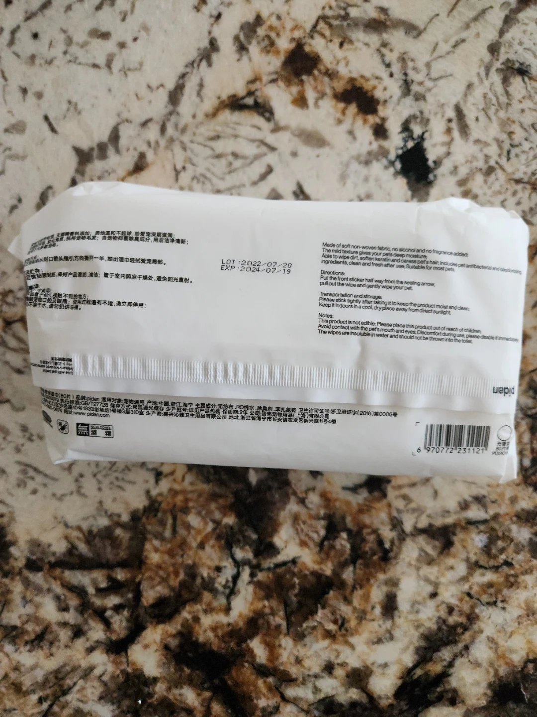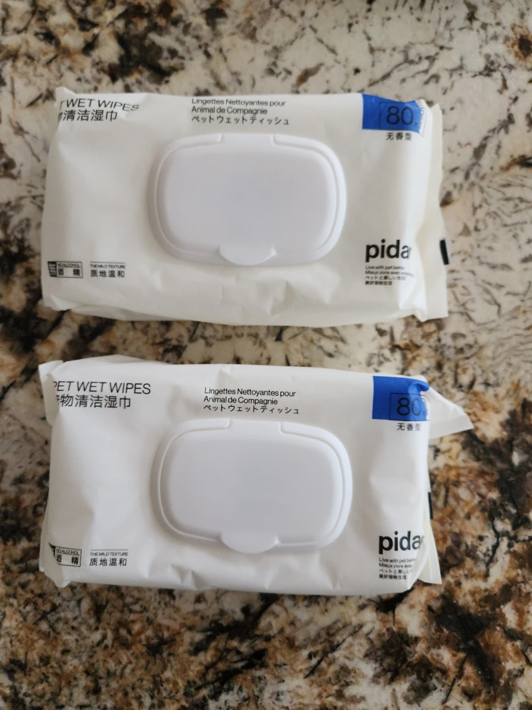 Made of soft non-woven fabric, these Pidan pet wet wipes are unscented and alcohol-free. They are formulated with gentle ingredients for cleaning your pet. Contains 80 wipes per pack. $6 each. 2 available
