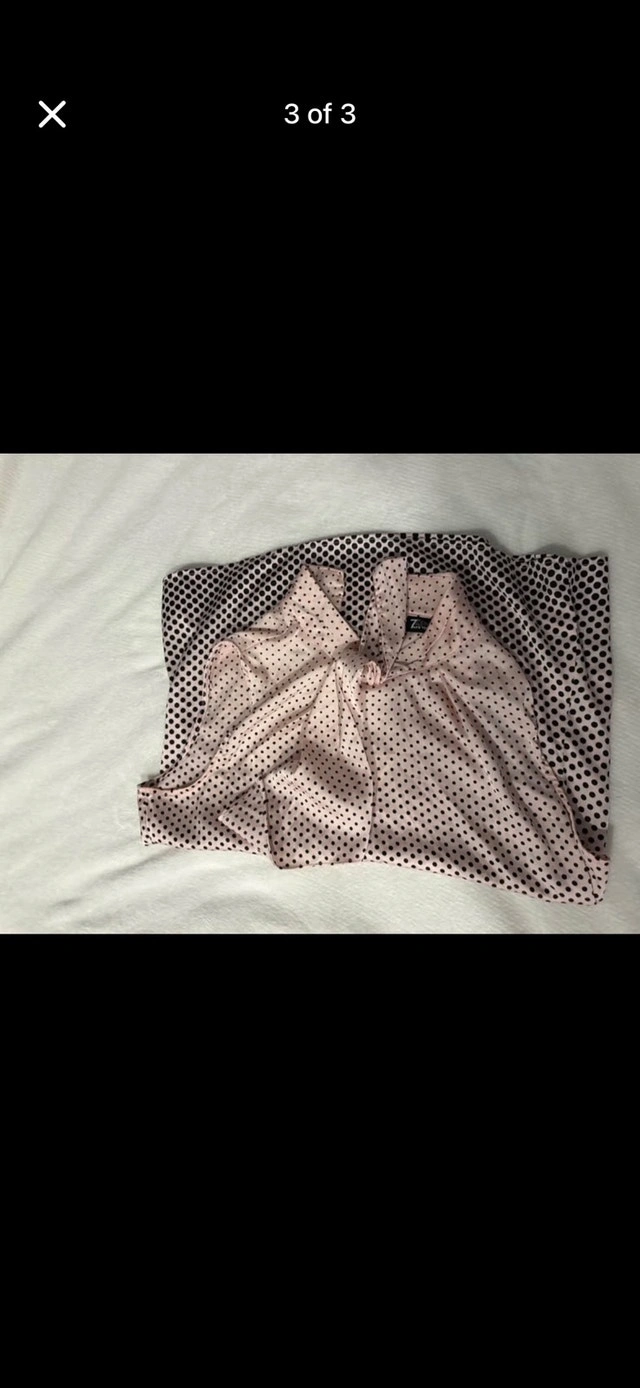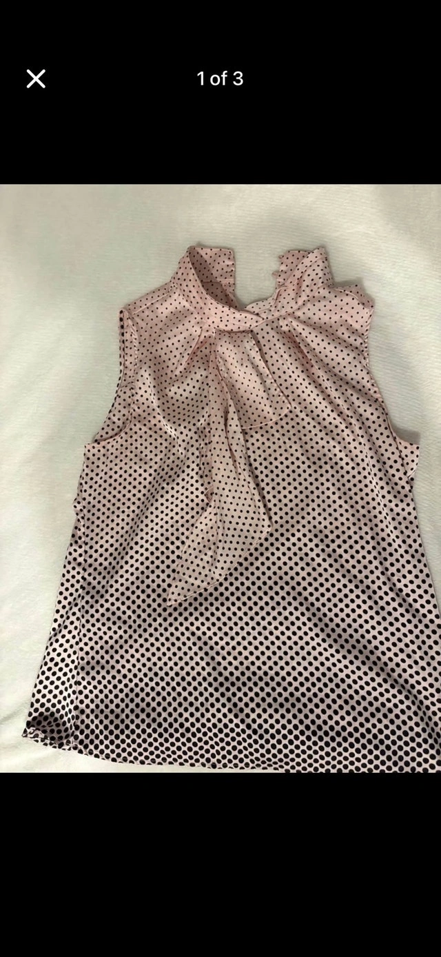 Stylish 7th Avenue Design Studio New York Company blouse with a charming polka dot pattern. This used blouse is in good condition and comes in a women's size medium. Sleeve length is sleeveless. It's a delightful addition to any closet, offering a touch of whimsy and sophistication. If you're seeing this ad, it means the blouse is still available. Cash and cashless payments accepted. For sale by owner.