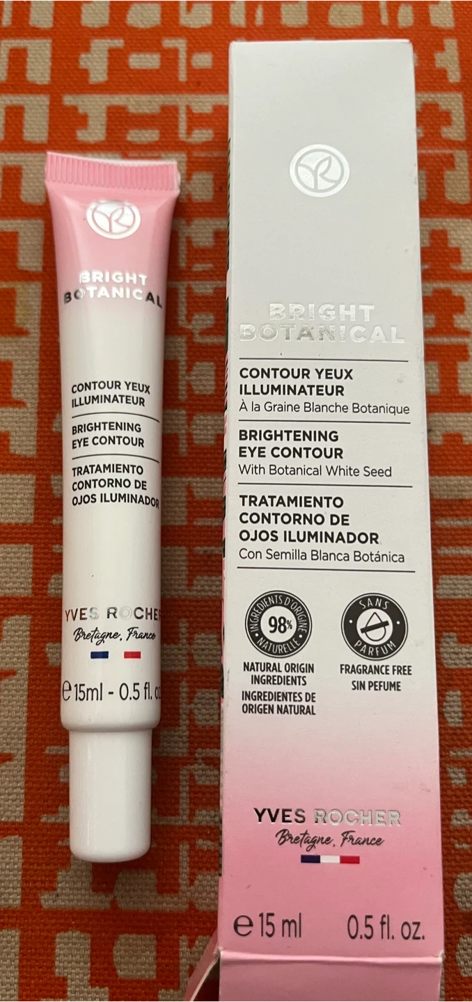 This Yves Rocher eye contour cream is fragrance-free. It's designed to brighten the eye area and comes in a 15ml tube. Apply morning and evening by massaging the eye contour.