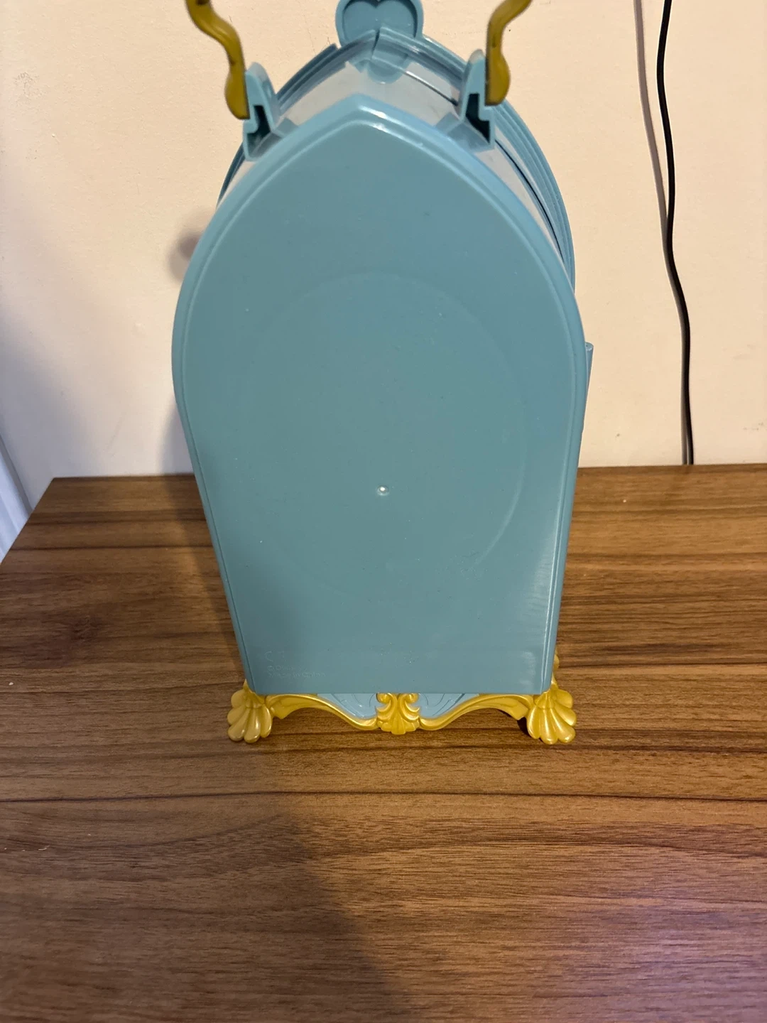 This Disney Princess jewelry box features Rapunzel. It opens up to reveal compartments and a mirror inside. It's perfect for storing small treasures and accessories!