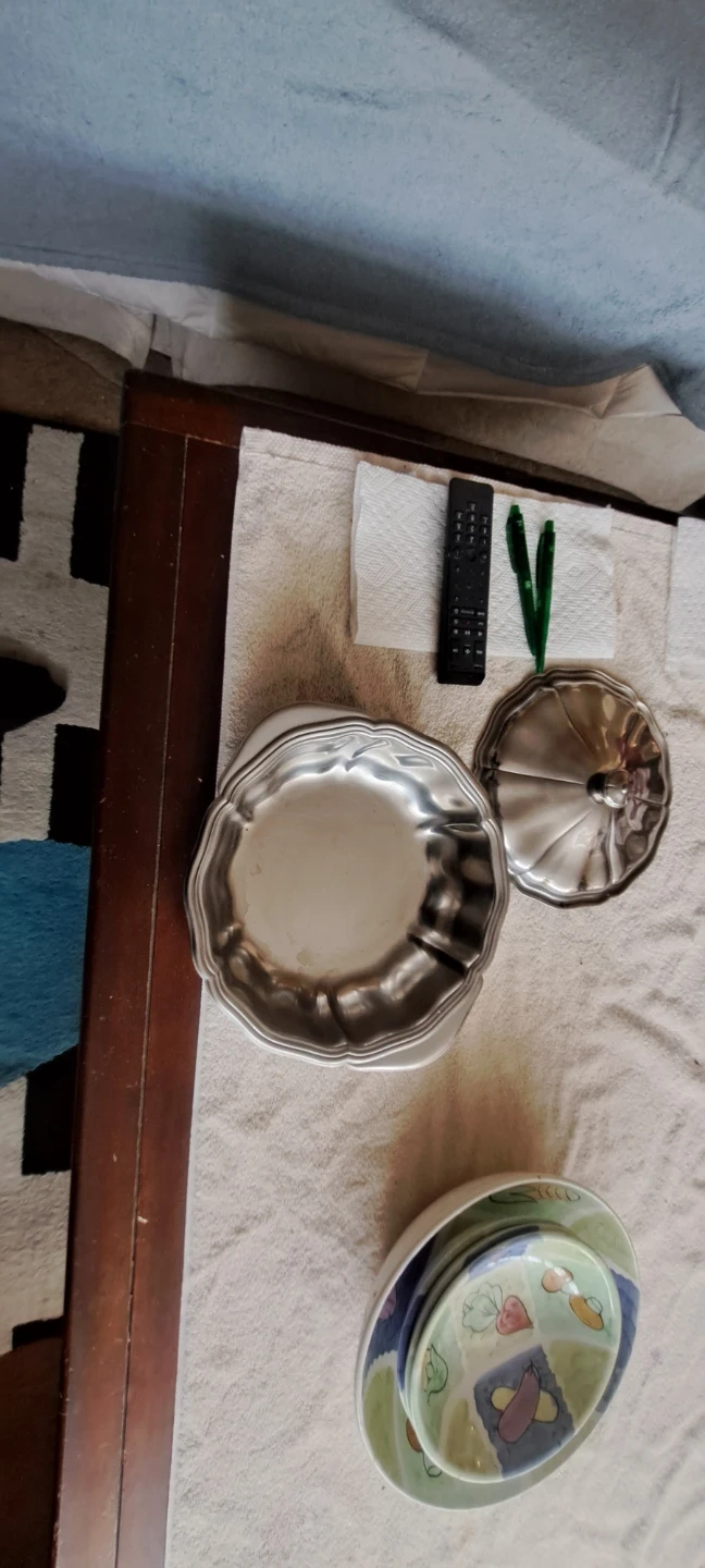 A decorative silver-plated serving dish with a matching lid. Its elegant fluted design makes it perfect for special occasions or everyday use. A great addition to any kitchenware collection!