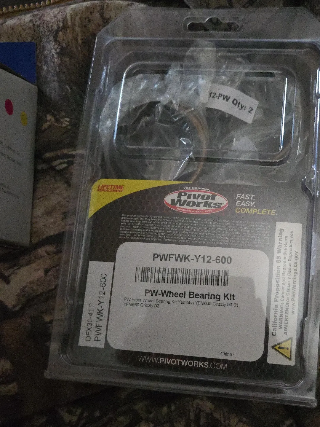 This is a Pivot Works PW-Wheel Bearing Kit for Yamaha YFM600 Grizzly models from 1999-2001 and YFM660 Grizzly models from 2002. It includes bearings and seals for the front wheel.