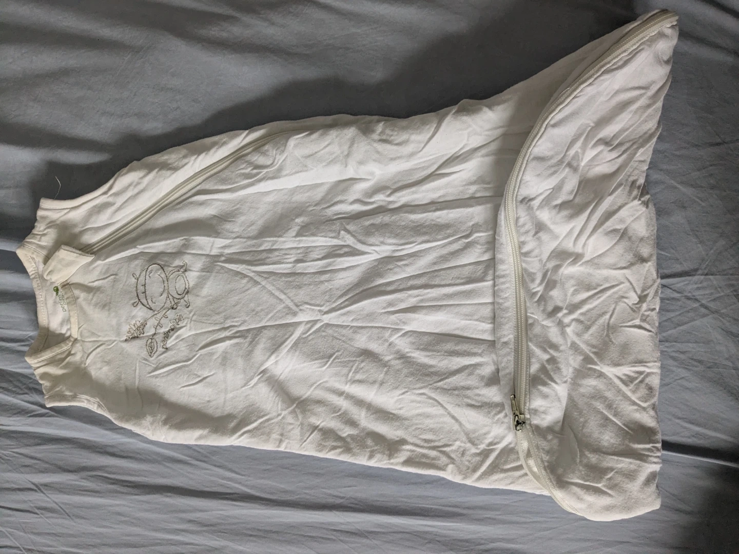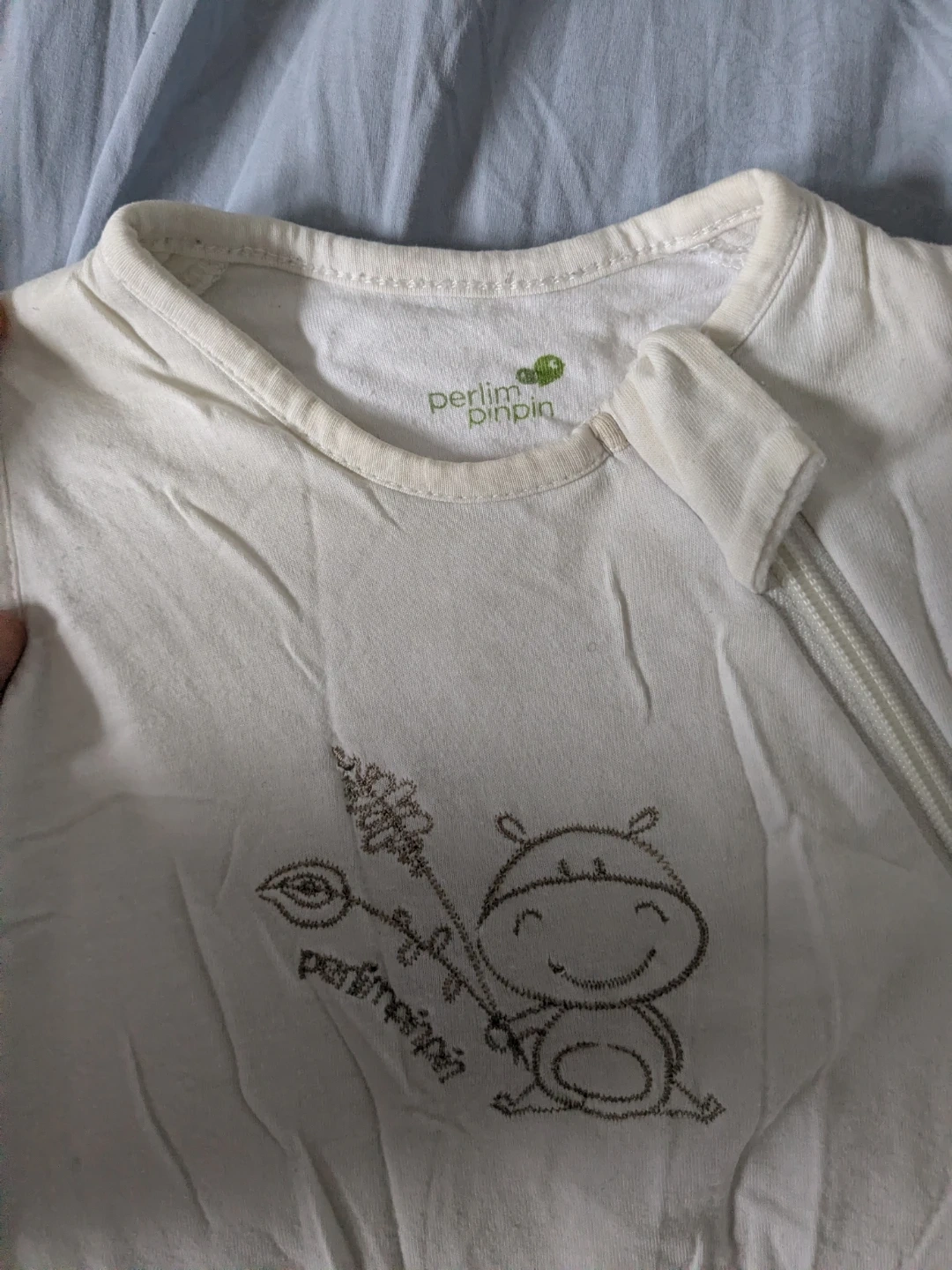 This is a cozy Perlim Pinpin baby sleep sack! It's in great condition and ready to keep your little one snug. It features a cute hippo design.