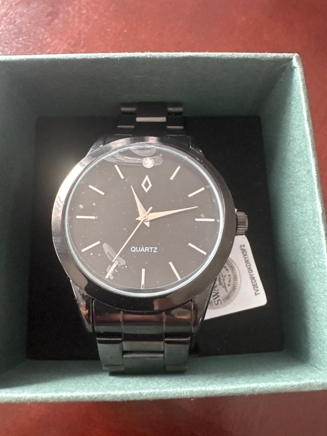 This NIC & SYD quartz watch features a sleek black design and is accented with genuine Swarovski crystals. It's perfect for adding a touch of sparkle to any outfit. The watch comes with its original box.