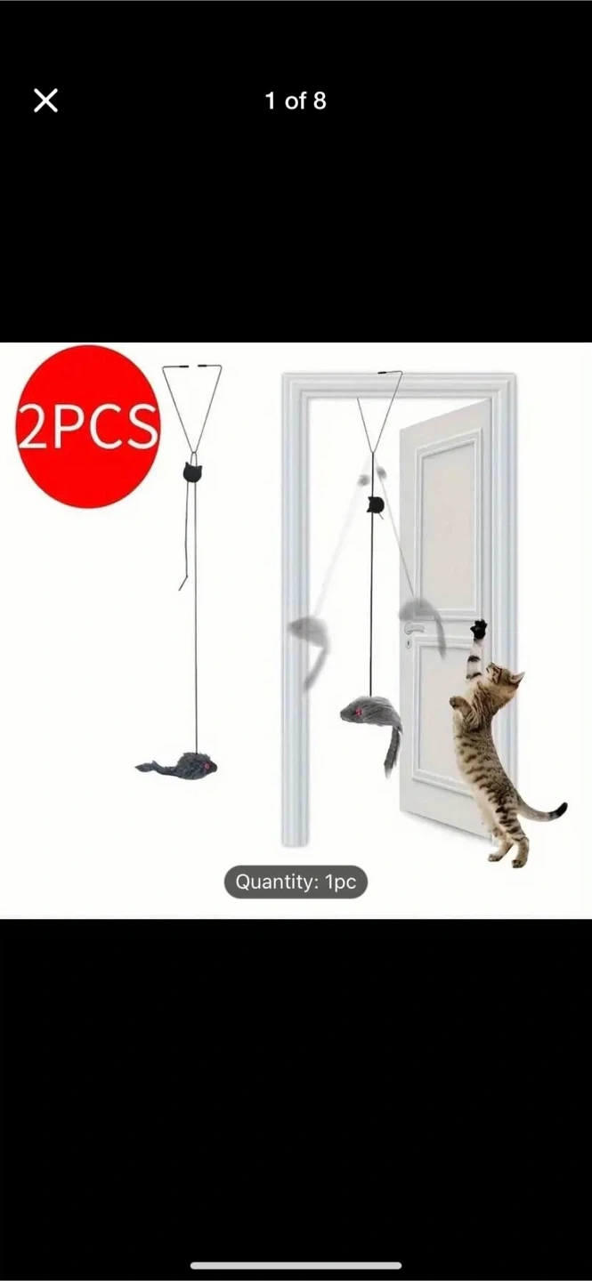 Keep your kitty entertained with this hanging mouse cat toy! It easily attaches to most door frames and provides hours of fun as your cat tries to catch the dangling mouse