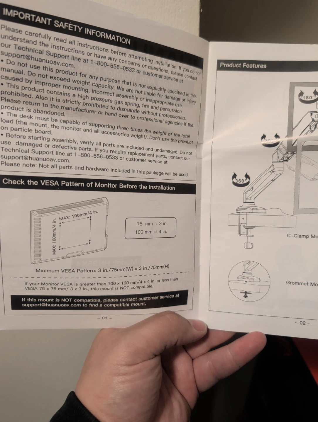 This is a HUANUO single arm monitor desk mount. It supports monitors up to 17.6 lbs (8 kg). Includes VESA mount plate.
