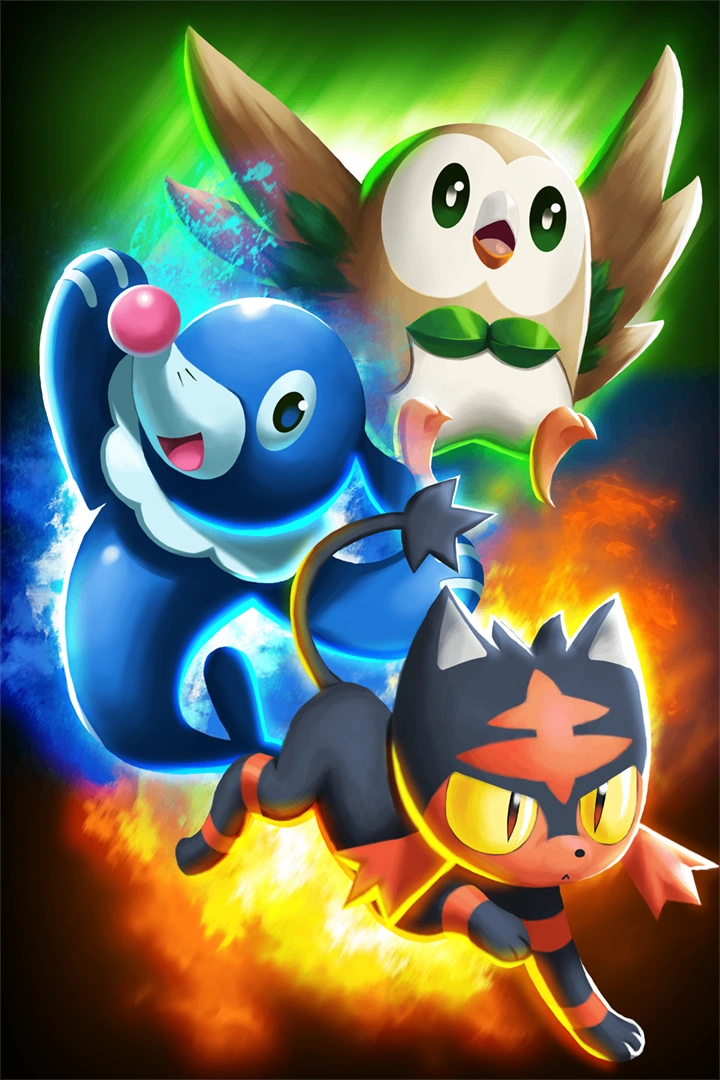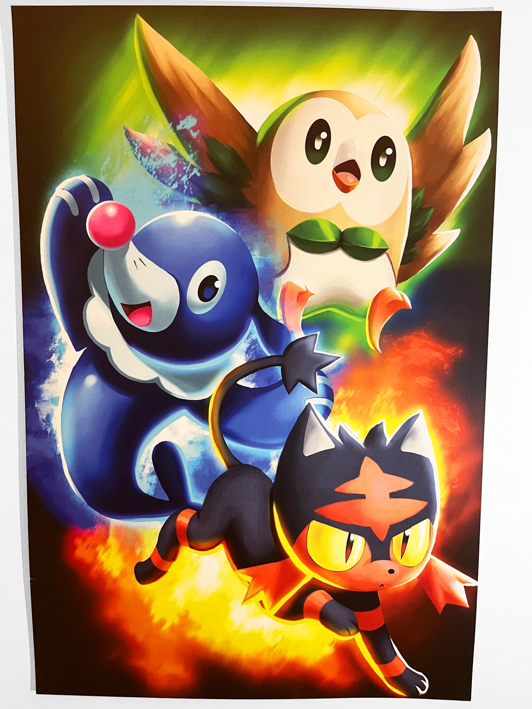 Pokemon Sun and Moon, Rowlet Litten Popplio, artwork by me! 12x18 inches, semi gloss paper. I have a lot more anime and comic poster on sale. Check out my full listing. For more of my work check out: https://www.deviantart.com/genghiskwan