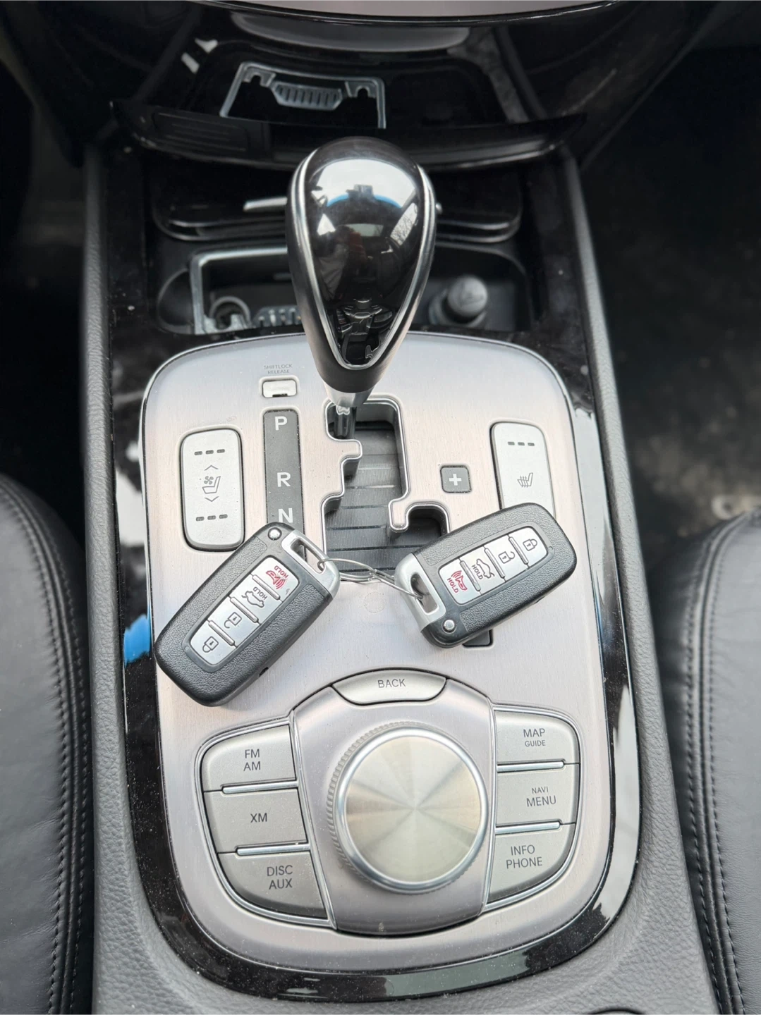 Spacious Hyundai Genesis sedan has a silver exterior. Clean black leather interior.