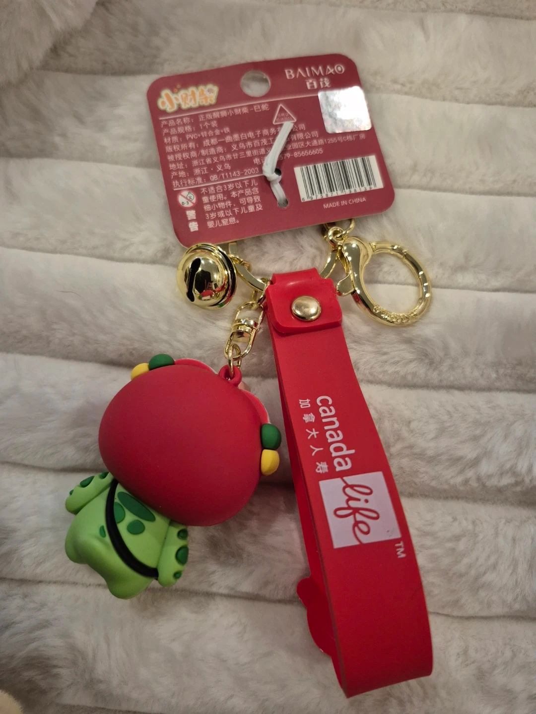 2025 Year of the Wood Snake Collectible keychain features an adorable animated green snake (6th in Chinese Zodiac) wearing red Lion Awakening headpiece used to ward off negative energy and welcome prosperity. The Snake represents wisdom, intuition and transformation. The Wood Snake occurs only every 60 years making this highly collectable. A great gift for those born in 1965, 1977, 1989, 2001 and 2013. Comes with "Lucky" red wrist strap, bell charm and gold tone hardware. Reverse wrist says Canada Life.