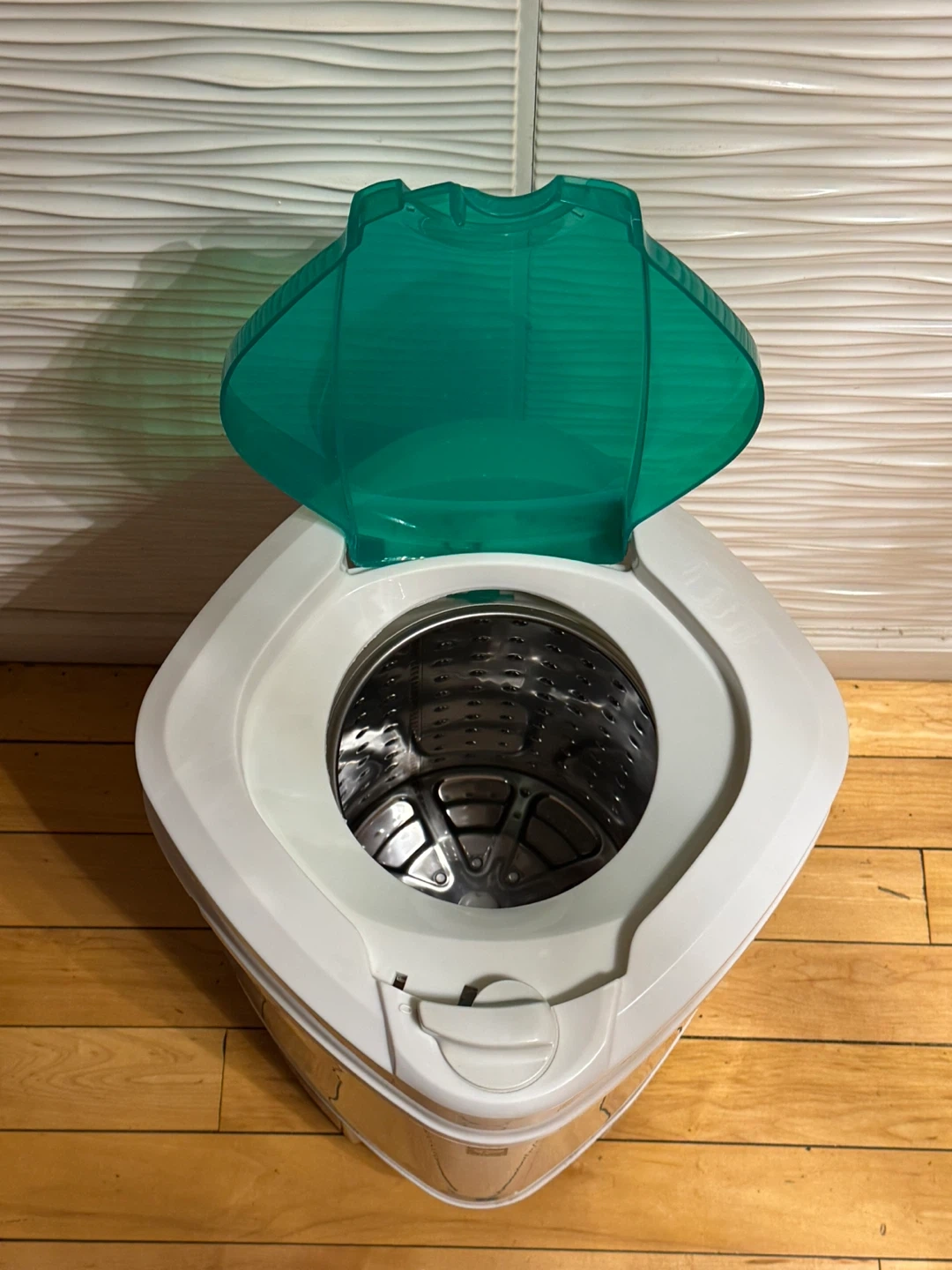 This Ninja 3200 RPM portable spin dryer with an 8lb capacity in white with a green lid. Features a stainless steel drum. A great fast way to quickly dry laundry!
