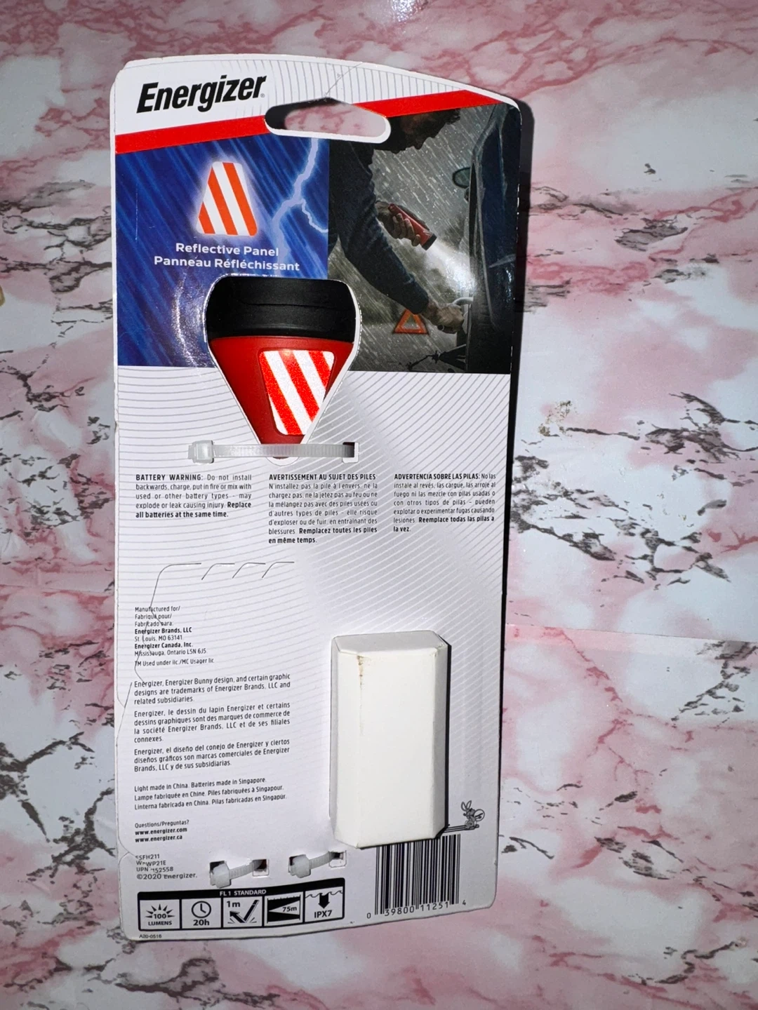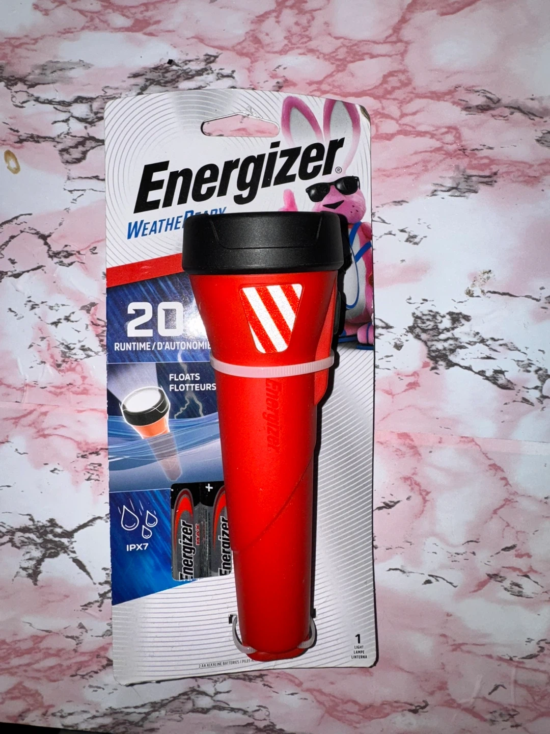 This is an Energizer Weather Ready flashlight. It's designed to float and is IPX7 water-resistant. It offers 20 hours of runtime.