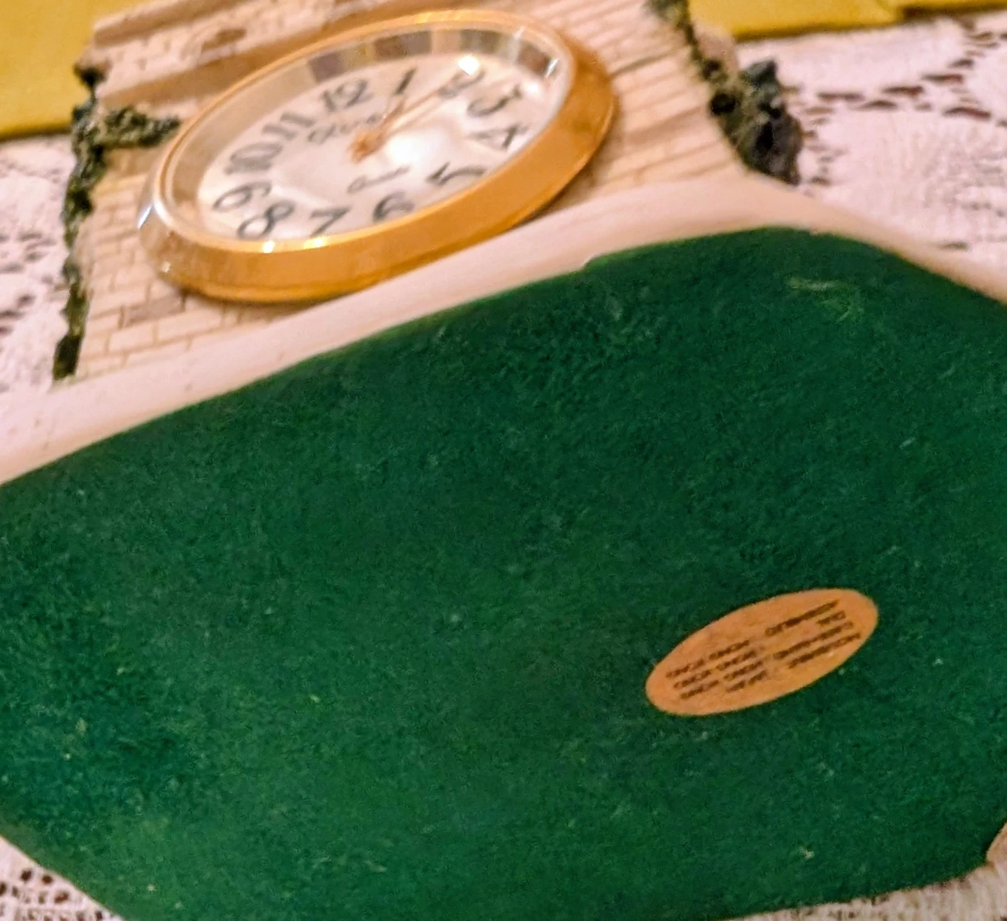 This decorative clock is shaped like a castle on the Great Wall of China. It features a gold-tone bezel and Roman numerals on the clock face. This piece adds a unique touch to any desk or shelf.