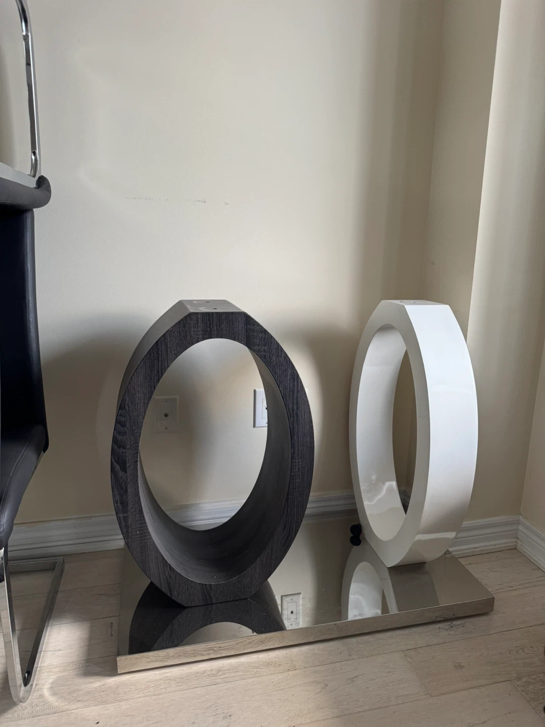 We have recently moved and cannot use the same dining set, which is why I am selling it. It has only been used for two years and was purchased from The Brick.