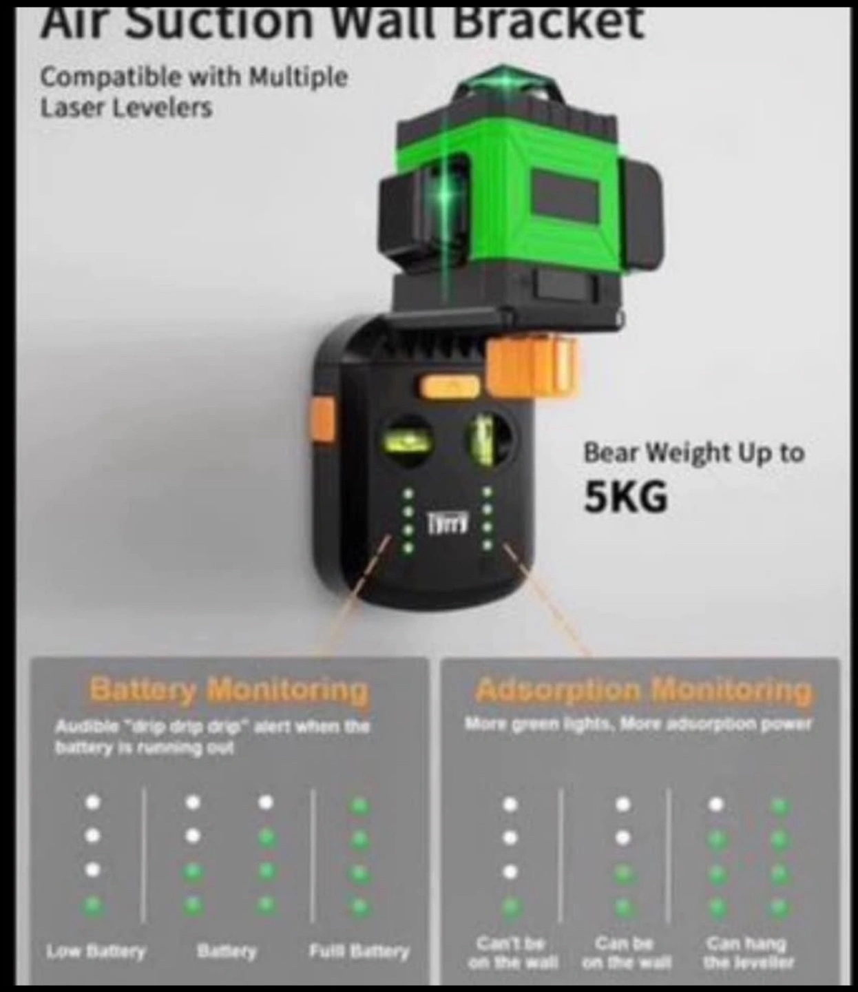 Tyrry 4-in-1 Laser Level Tool with Line Laser, Drill Dust Collector, Wall Bracket, Electronic Vacuum Suction Cup, 1800 mAh Battery, Leveler Tool Perfect for Picture Hanging, Painting, Home Renovations brand new in the box