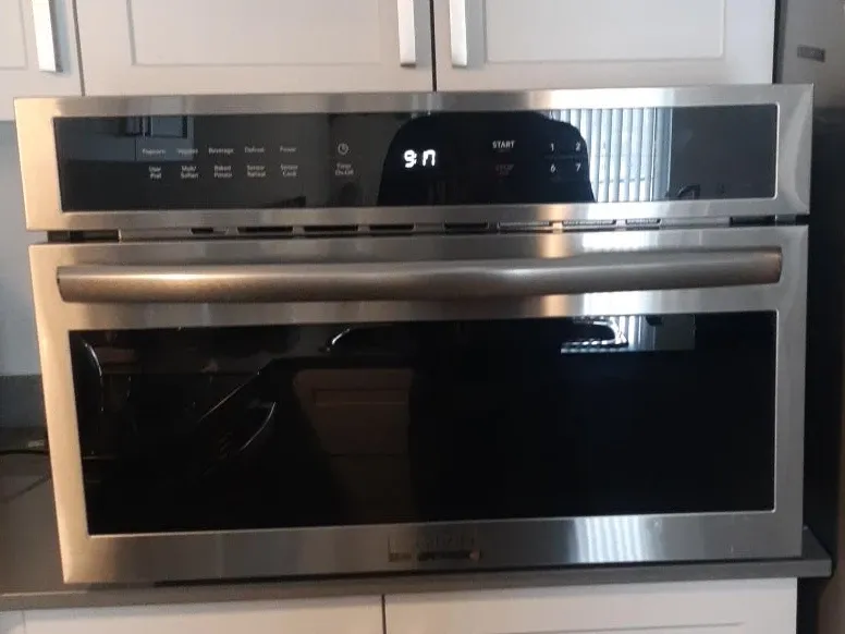 Selling a KitchenAid microwave oven in stainless steel. It's in good condition and ready to use in your kitchen. Features include multiple cooking functions like popcorn, beverage, defrost, and sensor cook. It also has options for baked potato and reheating. A great addition to any home!