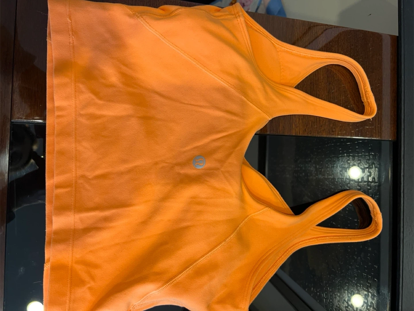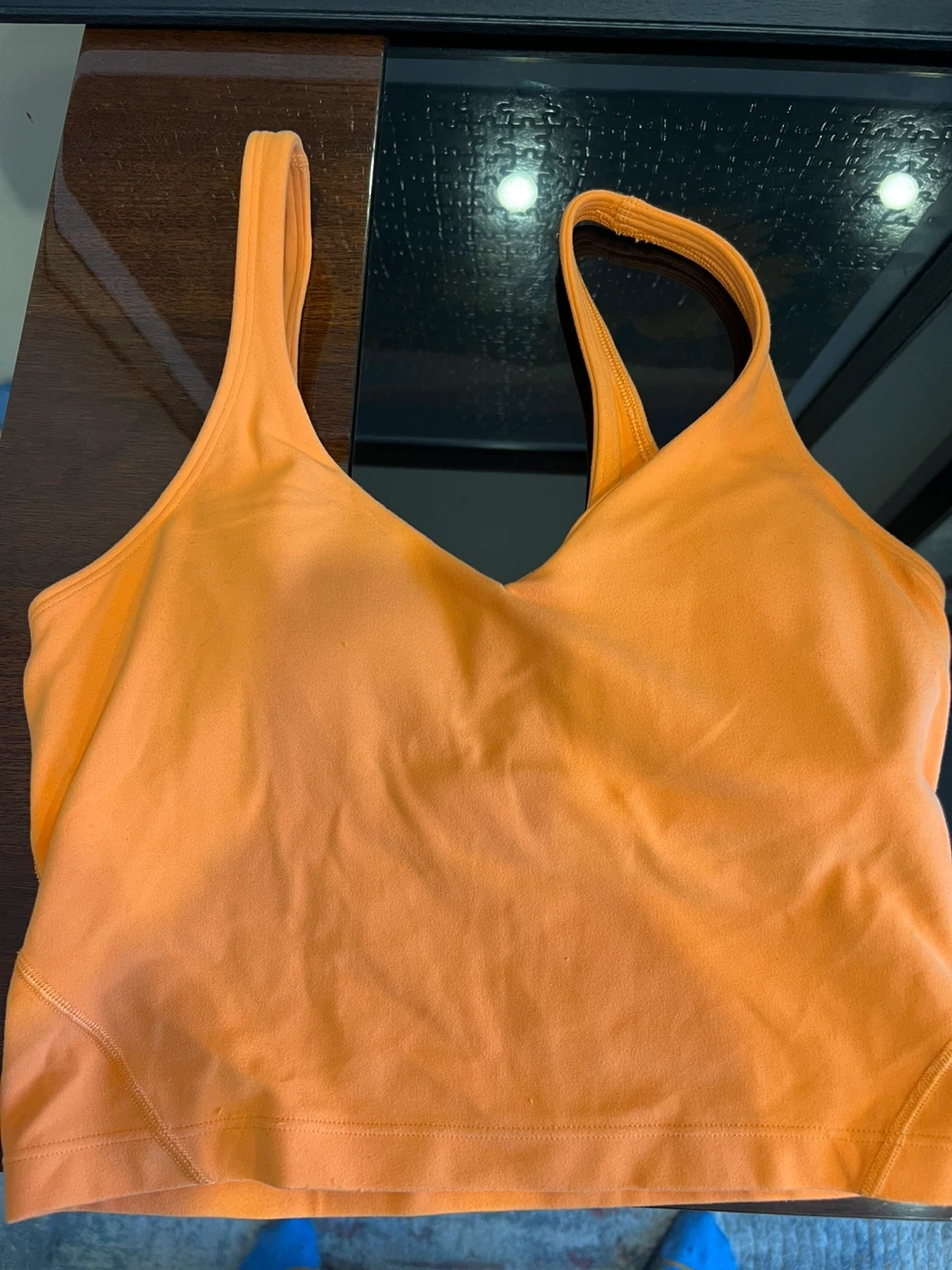 Orange Lululemon Align tank top. It's designed for comfort and movement. It's made from soft, breathable fabric.