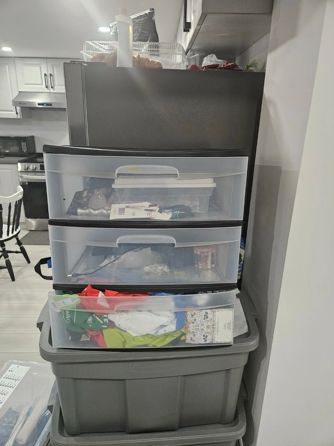 This is a clear plastic drawer storage unit with three drawers. It's great for organizing clothes or other household items. The unit is stackable and easy to clean.
