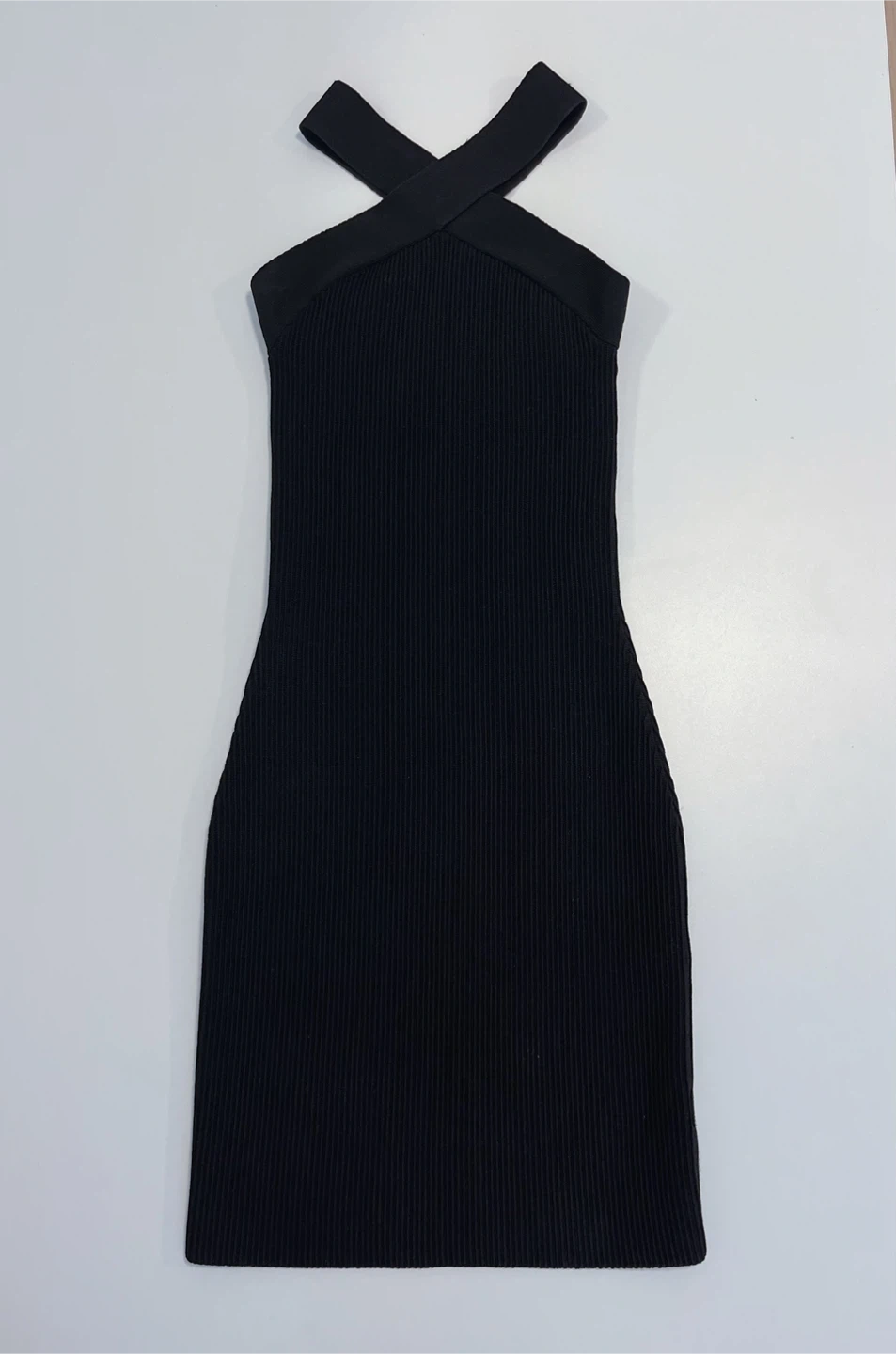 Brand New Babaton Black Ribbed Halter Neck Dress