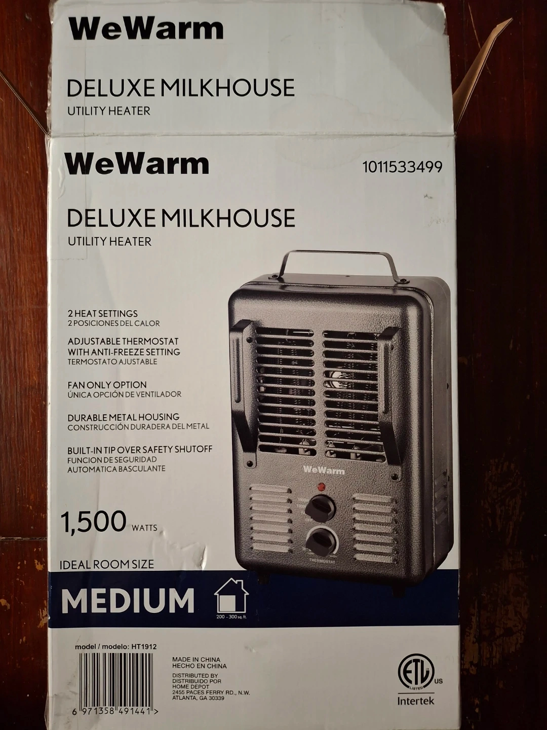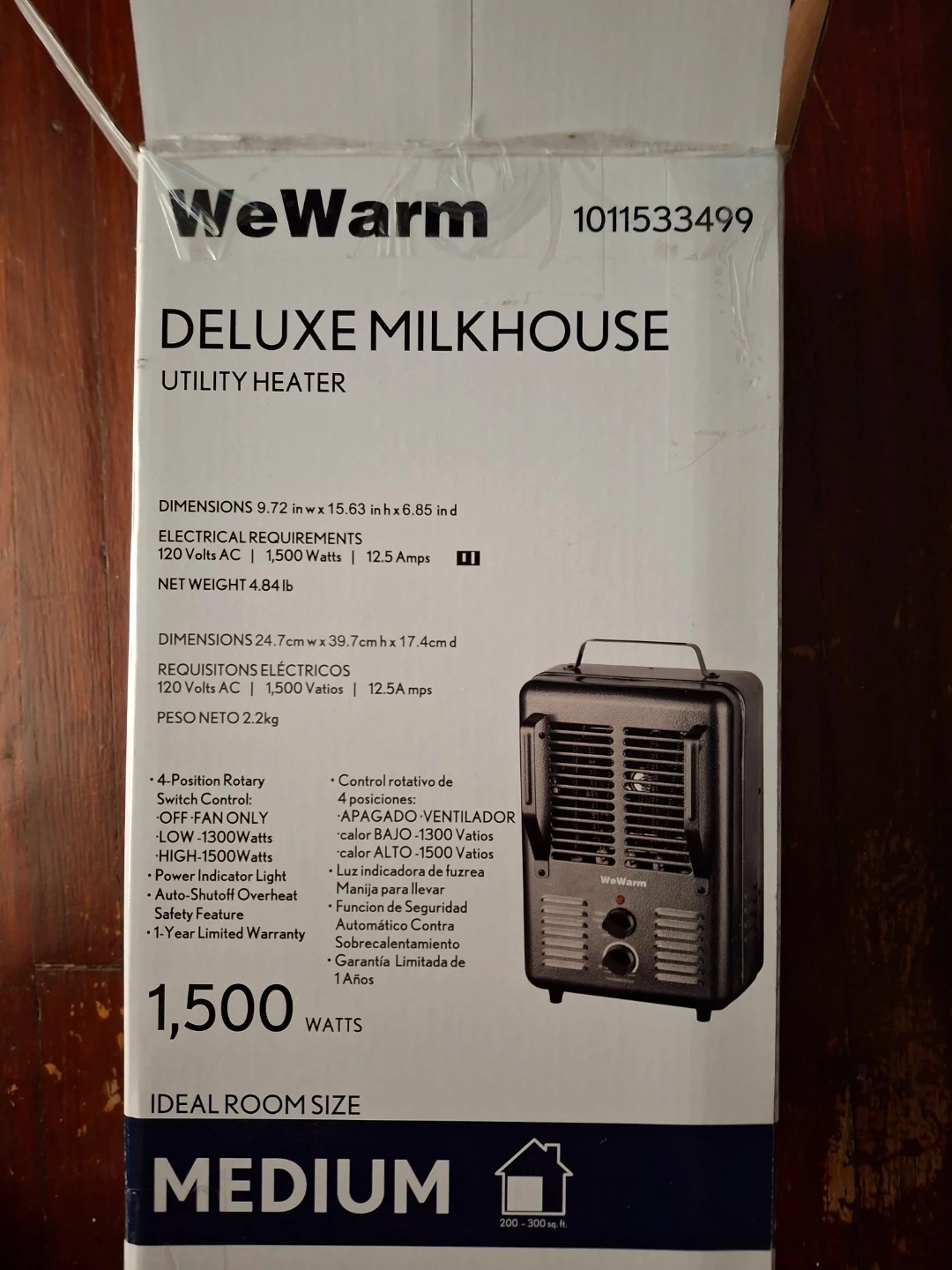 This WeWarm Deluxe Milkhouse utility heater offers 1500 watts of power and includes a fan-only option. It features a durable metal housing with a built-in tip-over safety shutoff. Ideal room size is medium, covering 200-300 sq. ft.
