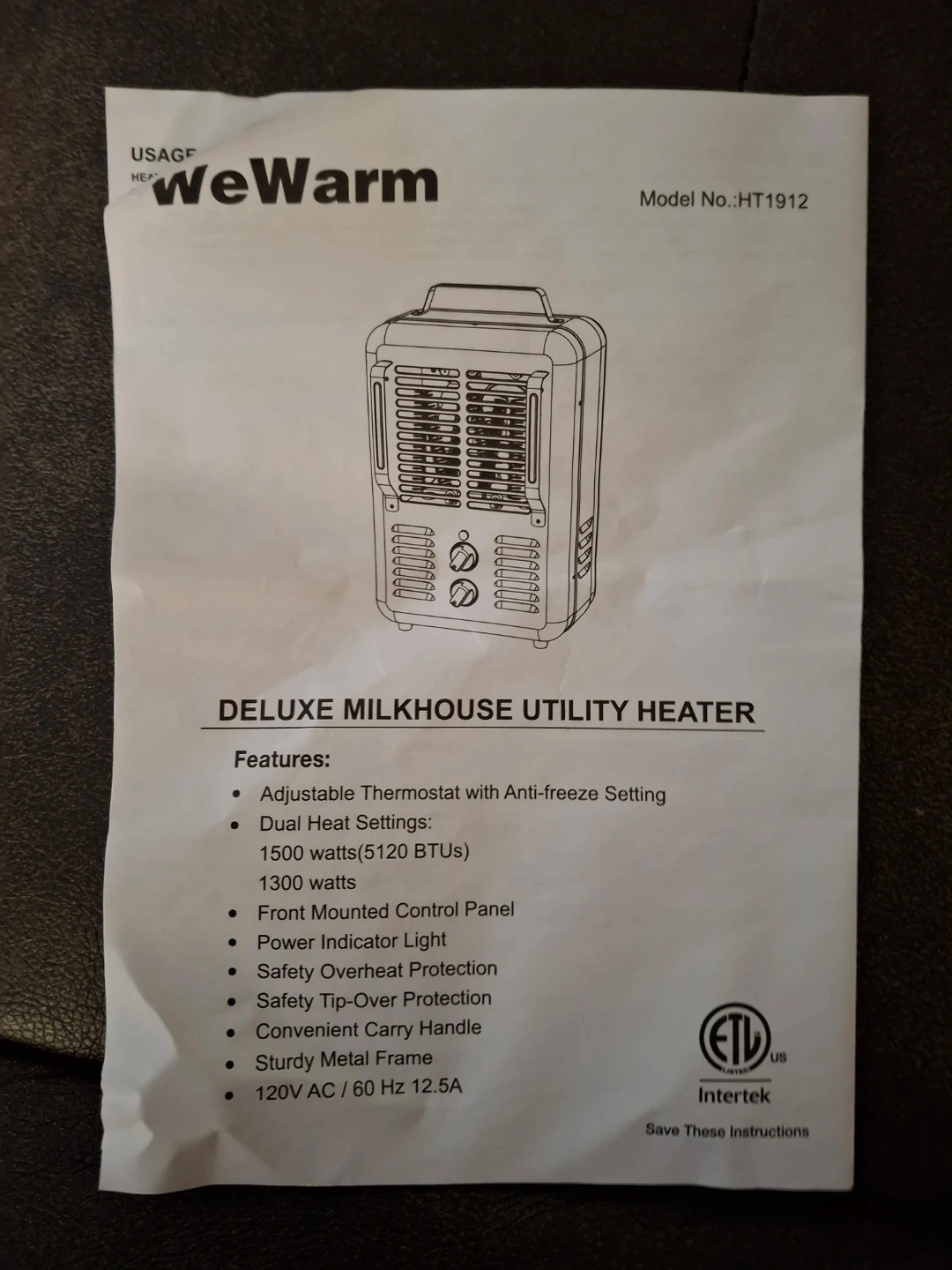 WeWarm Deluxe Milkhouse Utility Heater 1500W