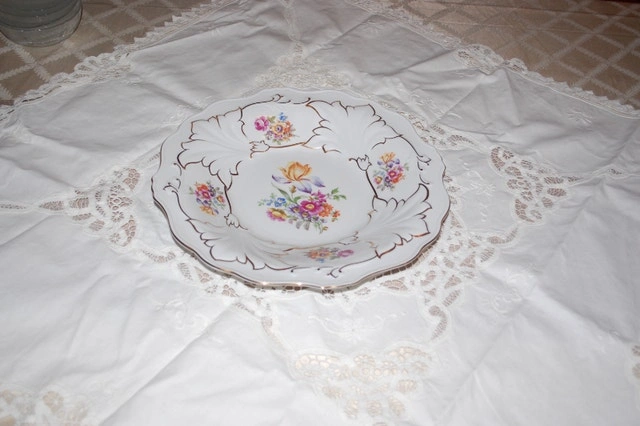 This beautiful Weimar decorative porcelain serving dish is in like-new condition, with no chips or scratches. It's perfect for displaying, serving desserts, or as a decorative piece. This is a vintage porcelain item, made in Germany, and is one of many items available from an estate sale. Located near Britannia Rd. and Ninth Line in Mississauga.