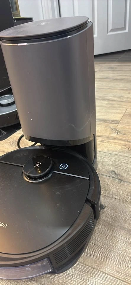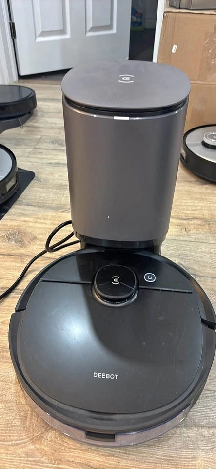 Up for sale is an Ecovacs DEEBOT robot vacuum cleaner with its original auto-empty charging station. The unit is in excellent cosmetic condition, except for a small crack on the top housing (see pictures). The unit powers on and moves, but it tends to get stuck during operation. Perfect for someone looking for replacement parts or a technician who can repair it. Includes the robot vacuum and the auto-empty bin station. Sold strictly AS-IS. Testing is available at my location upon pickup.