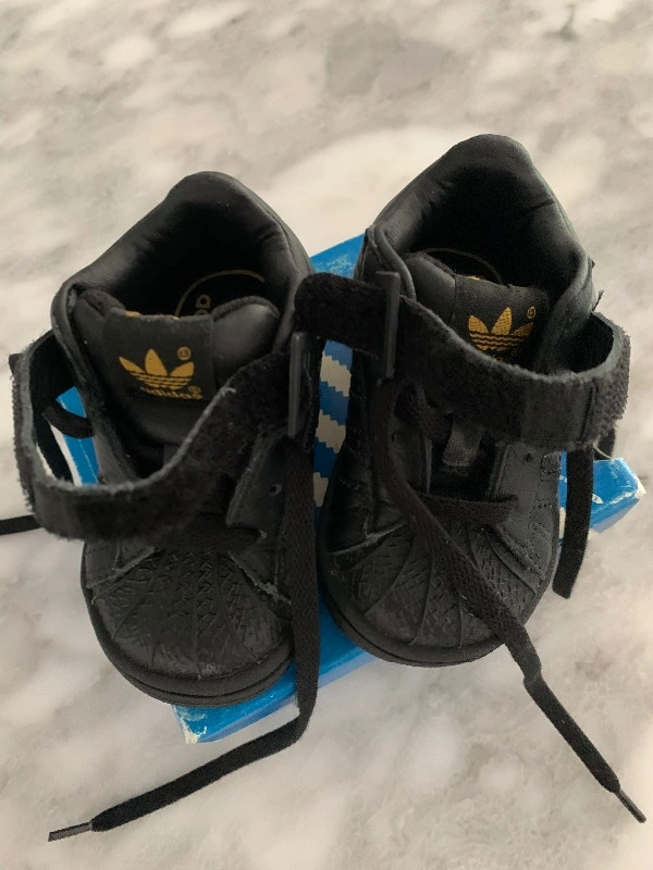 Baby Boy or Girl ADIDAS leather shoes in size US 4. Authentic. Brand new in box. Pickup at Davisville station. Cash accepted.