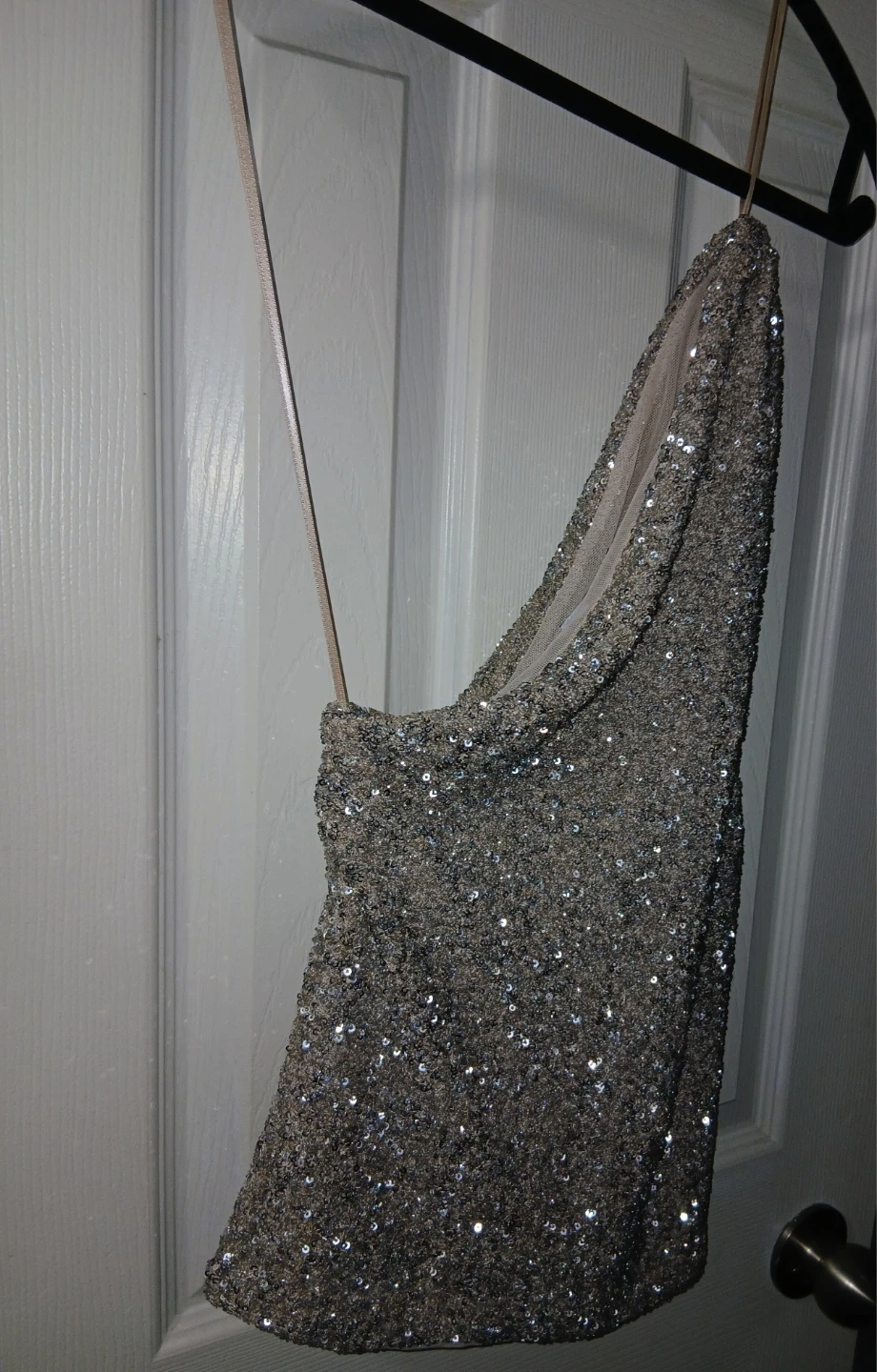 Sparkly sequin top from ZARA with a one-shoulder design in a beautiful cream color. Size medium.