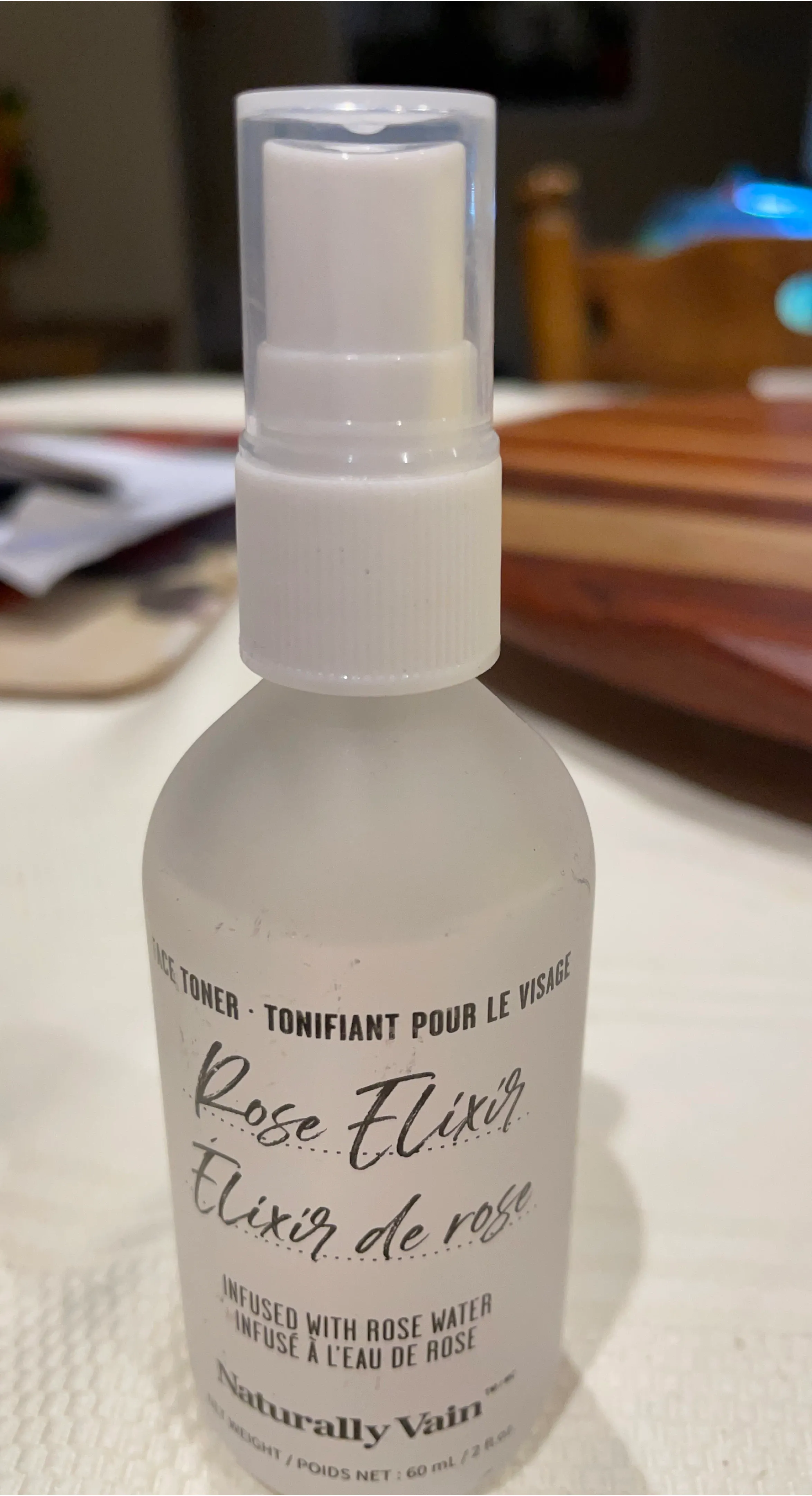A face toner infused with rose water. It's 60 ml / 2 fl. oz. size. Perfect for refreshing your skin!